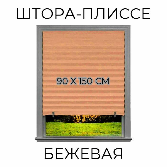 Купить Штора-плиссе самоклеящаяся 90х150 полиэстер, бежевая