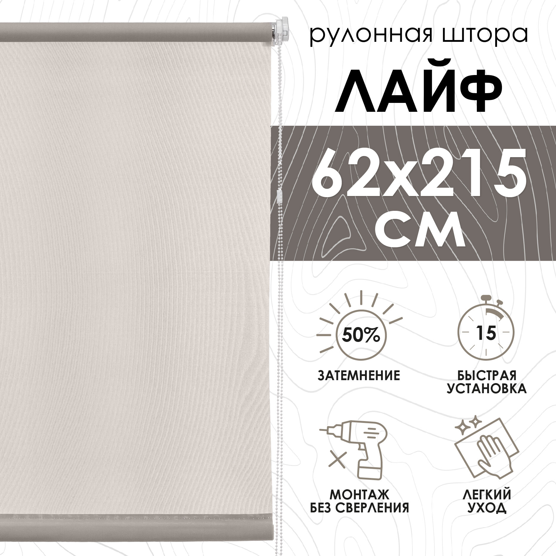 Рулонная штора, "Эскар", для балконной двери Лайф, цвет бежевый 62х215 см