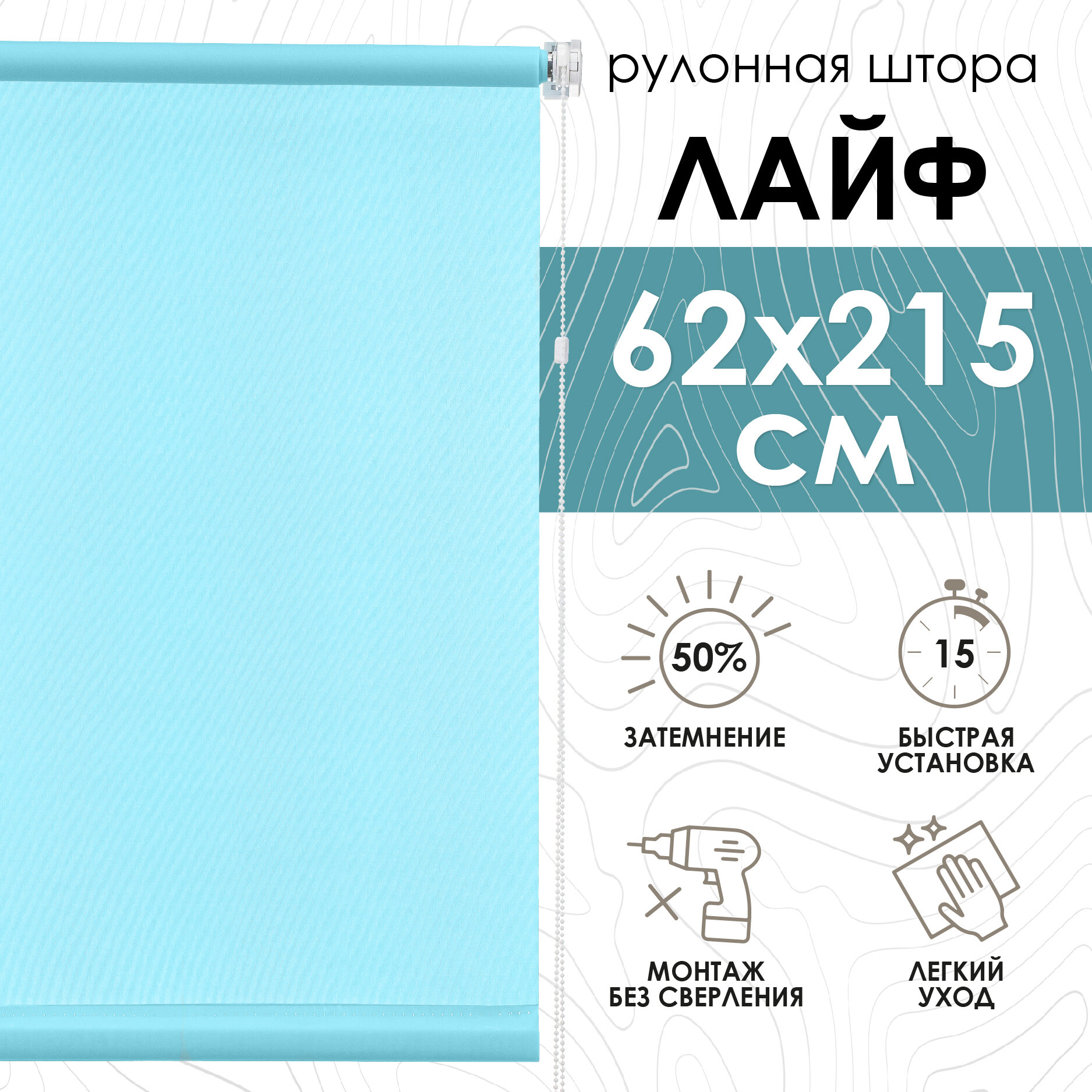 СохранитьРулонная штора для балконной двери Эскар Лайф, полиэстер, бирюзовый, 62х215 см интересное: