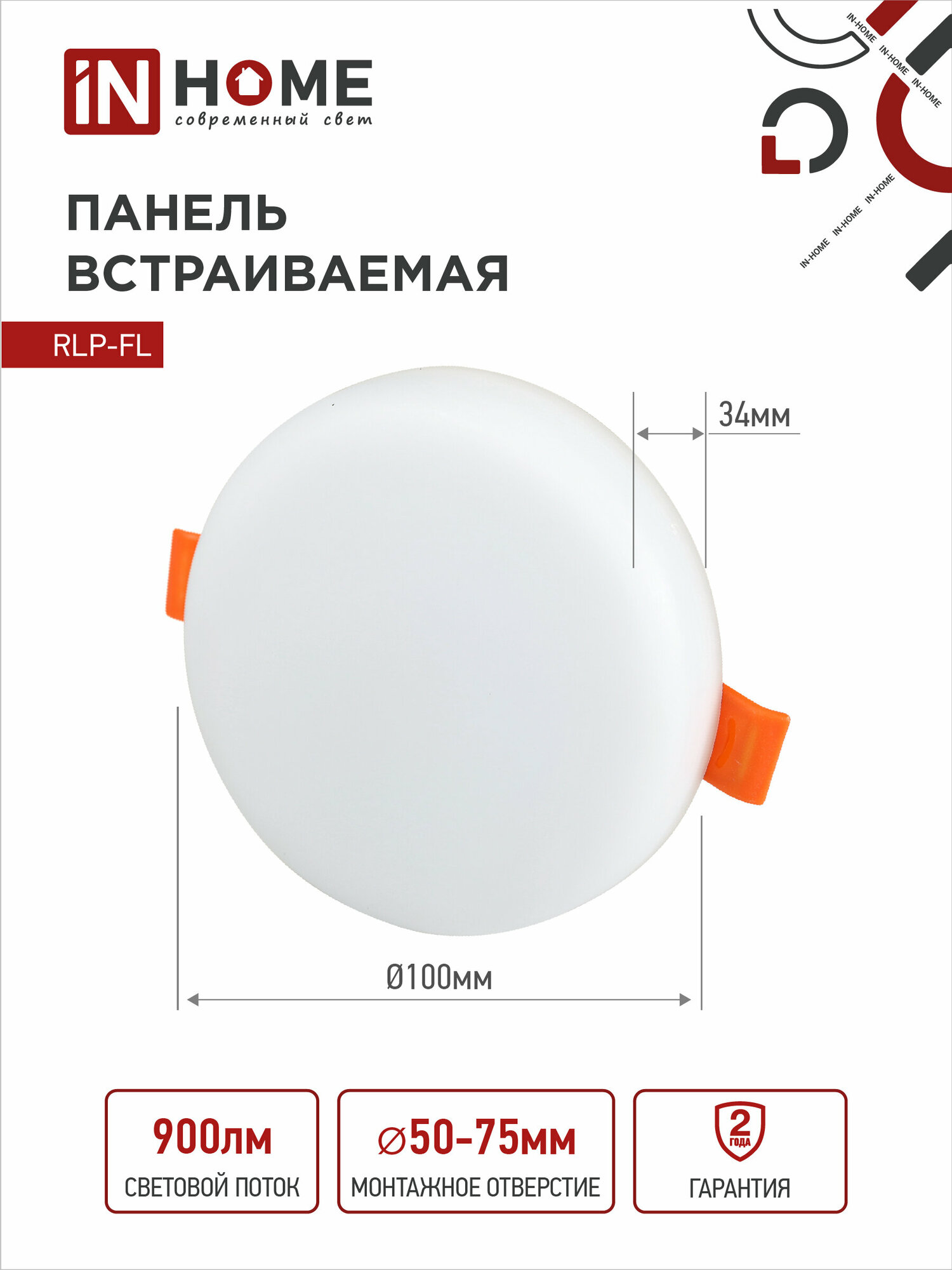 IN HOME Панель сд встр безрам RLP-FL 10Вт 230В 6500К 900Лм 100мм с рег. монтаж. 45-80мм белая IP20 (арт. 4690612036724) интересное: