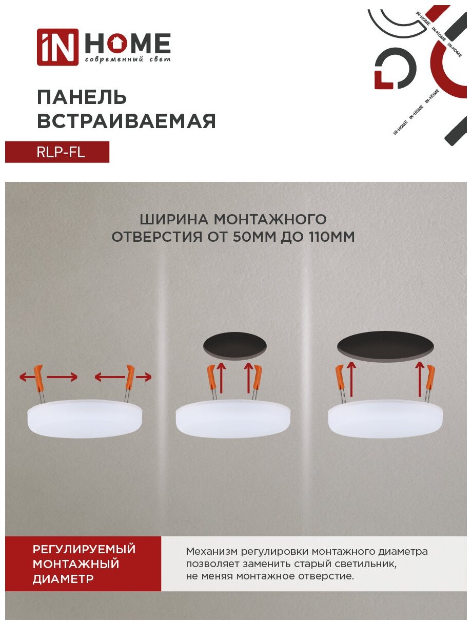 IN HOME Панель сд встр безрам RLP-FL 18Вт 230В 4000К 1620Лм 120мм с рег. монтаж. 45-100мм белая IP20 (арт. 4690612036694)