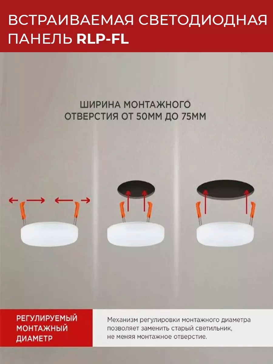 Панель светодиодная встраиваемая безрамочная RLP-FL 18Вт 230В 4000К 1260Лм 120мм с рег. монтаж. 50-1 интересное: