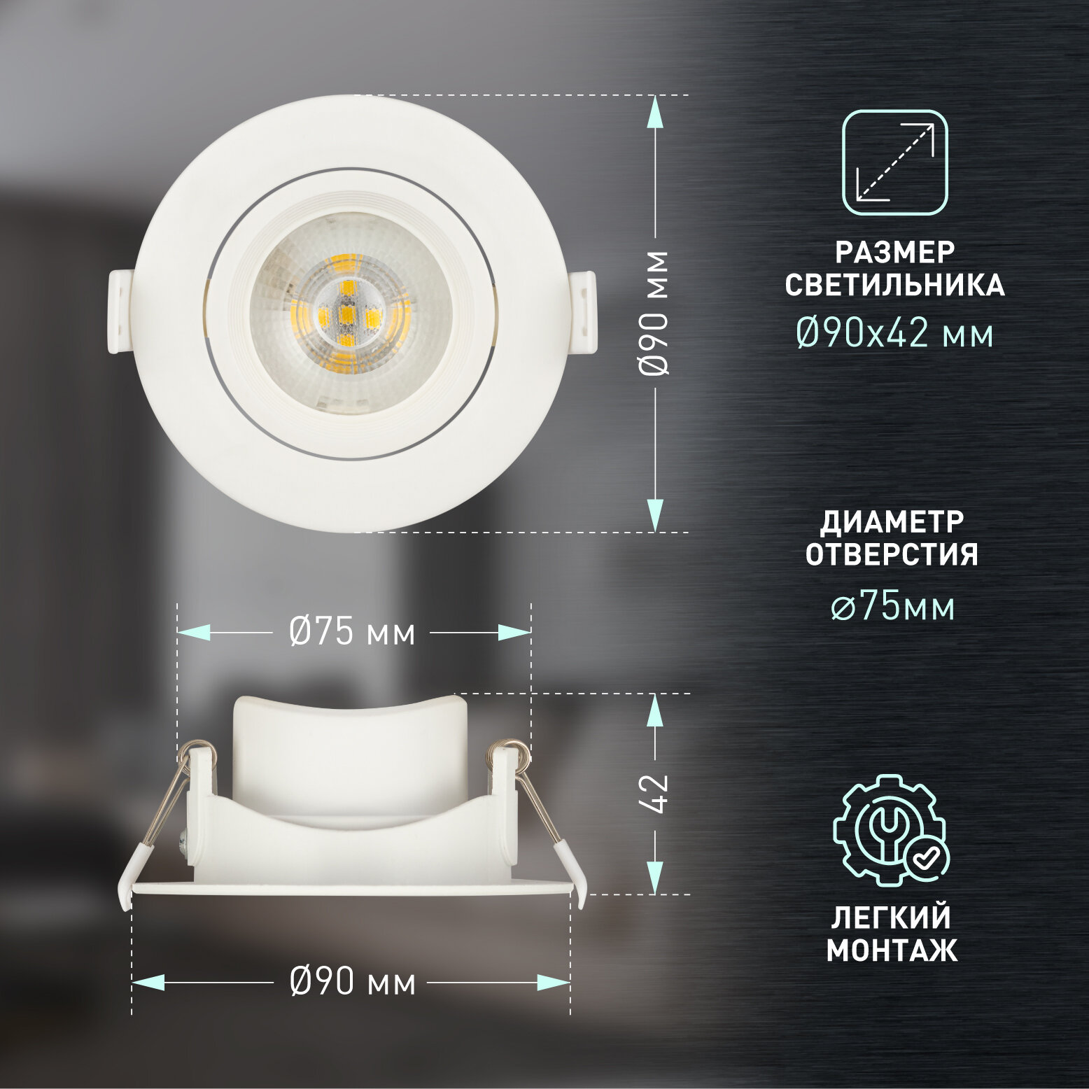 | Ширина/диаметр врезного отверстия | 75 мм |