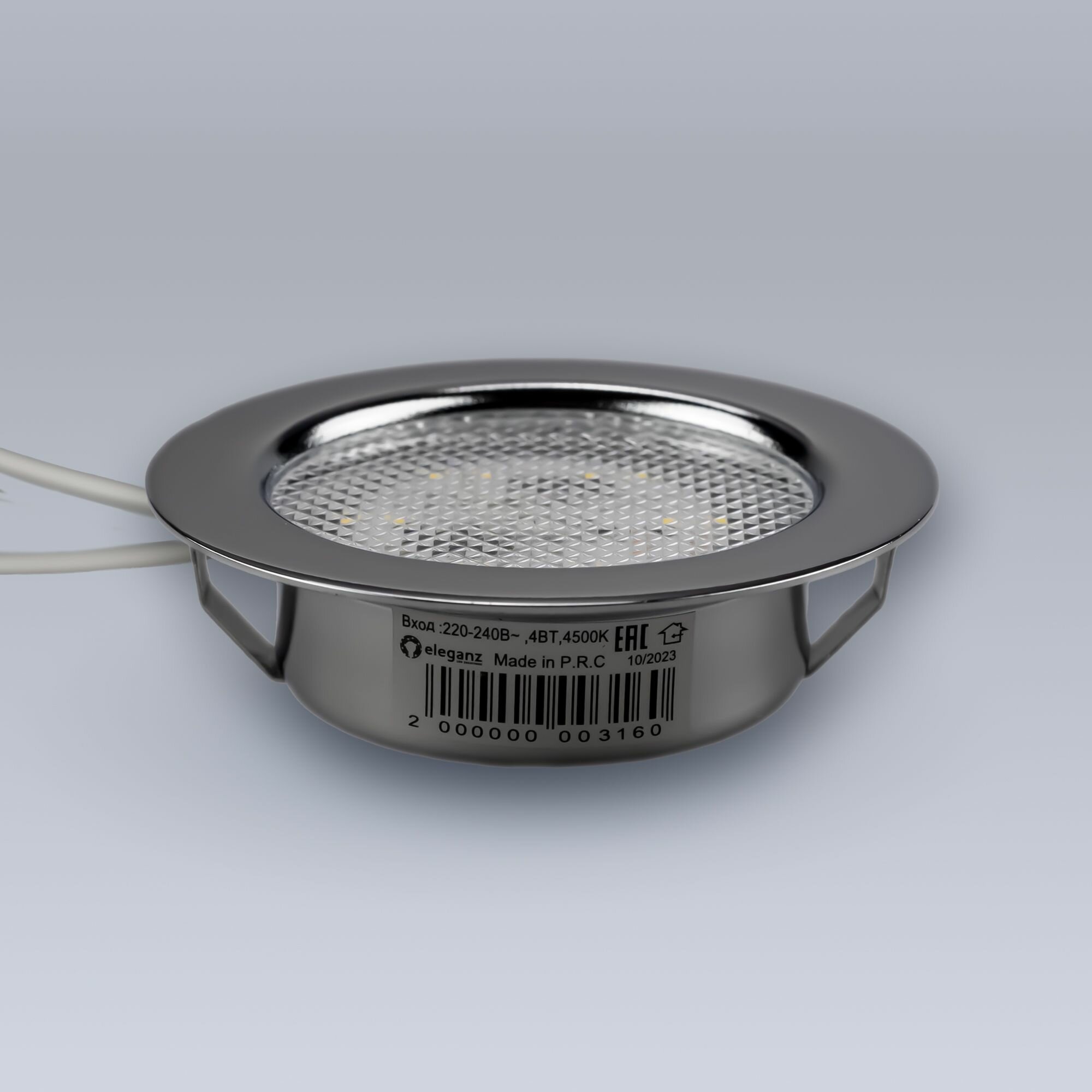 Светильник мебельный "Eleganz 4Вт", цвет хром, корпус Термопластик, круглый, нейтральный белый свет, 73х73х21мм.