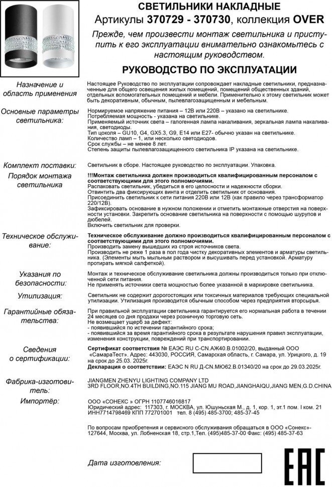 | Гарантийный срок | 2 г., Гарантия (месяцев): 24 |