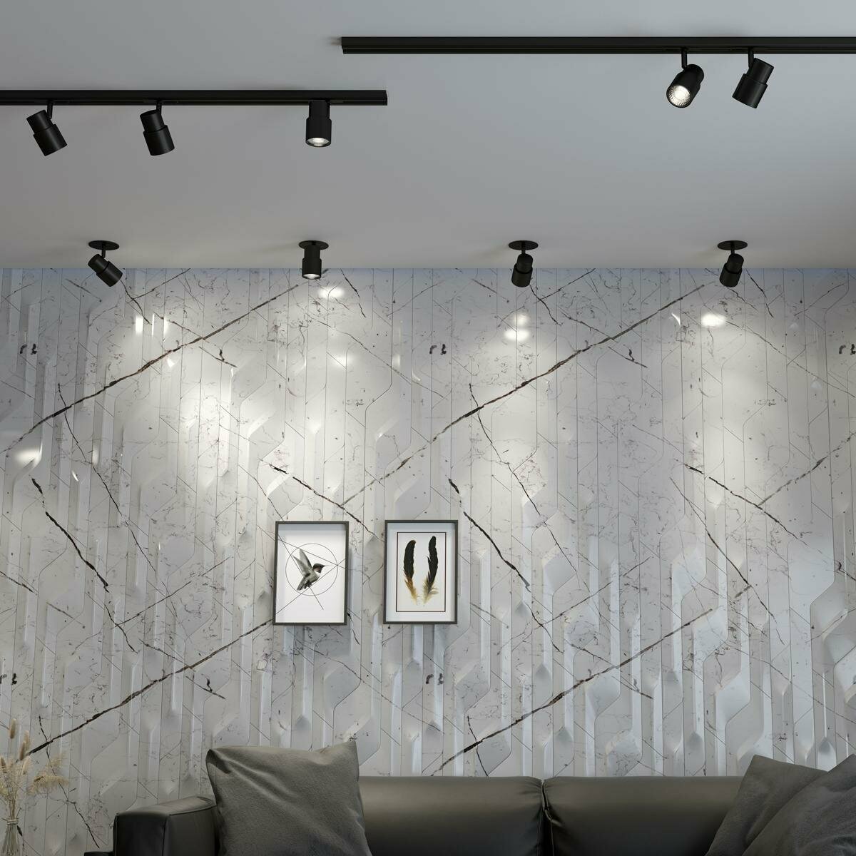 Светильник белый 370821 трековый однофазный трехжильный, провод 1м IP20 GU10 9W 220V GARN