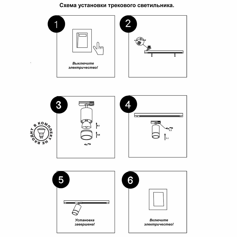 Светильник белый 370821 трековый однофазный трехжильный, провод 1м IP20 GU10 9W 220V GARN