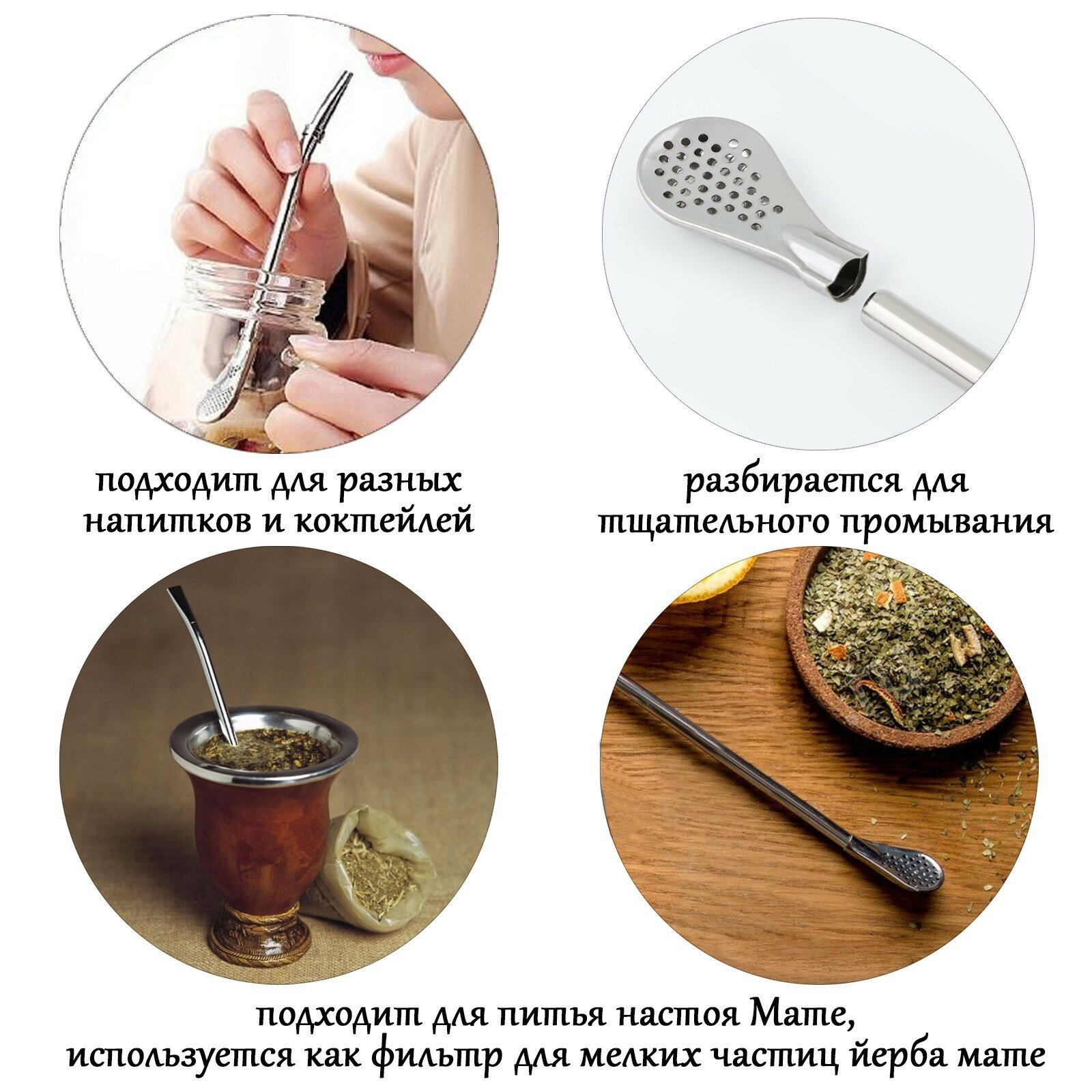 Бомбилья для чая Йерба Мате мини, l-18.5 см, с ёршиком, серебро 9438113 интересное:
