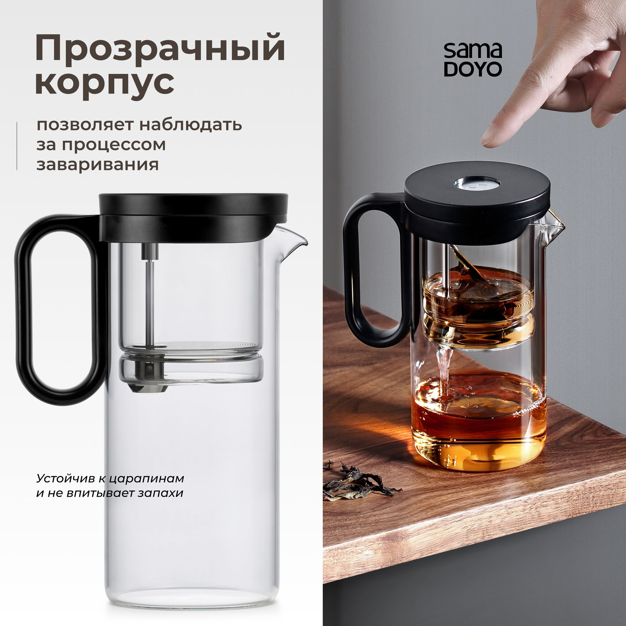 Заварочный чайник Гунфу с фильтром проливной SAMADOYO 500 мл, Стеклянный Чайник Типод с ситечком и кнопкой, Заварник для горячих напитков стекло