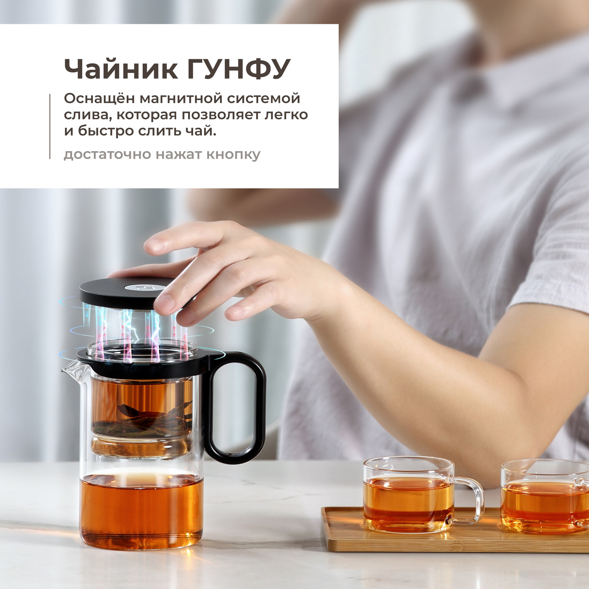 Заварочный чайник Гунфу с фильтром проливной SAMADOYO 500 мл, Стеклянный Чайник с магнитом, Типод с ситечком и кнопкой магнитный, Заварник для горячих напитков стекло
