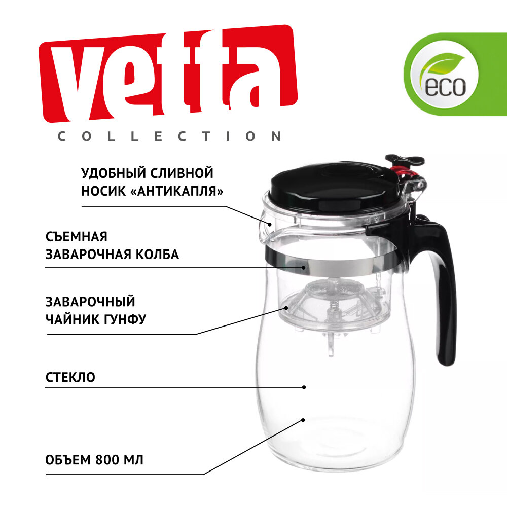 VETTA Микке Чайник заварочный с кнопкой "Гунфу" 800мл 850-204