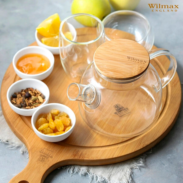 Чайник заварочный WILMAX стеклянный с фильтром и с бамбуковой крышкой, 950 мл