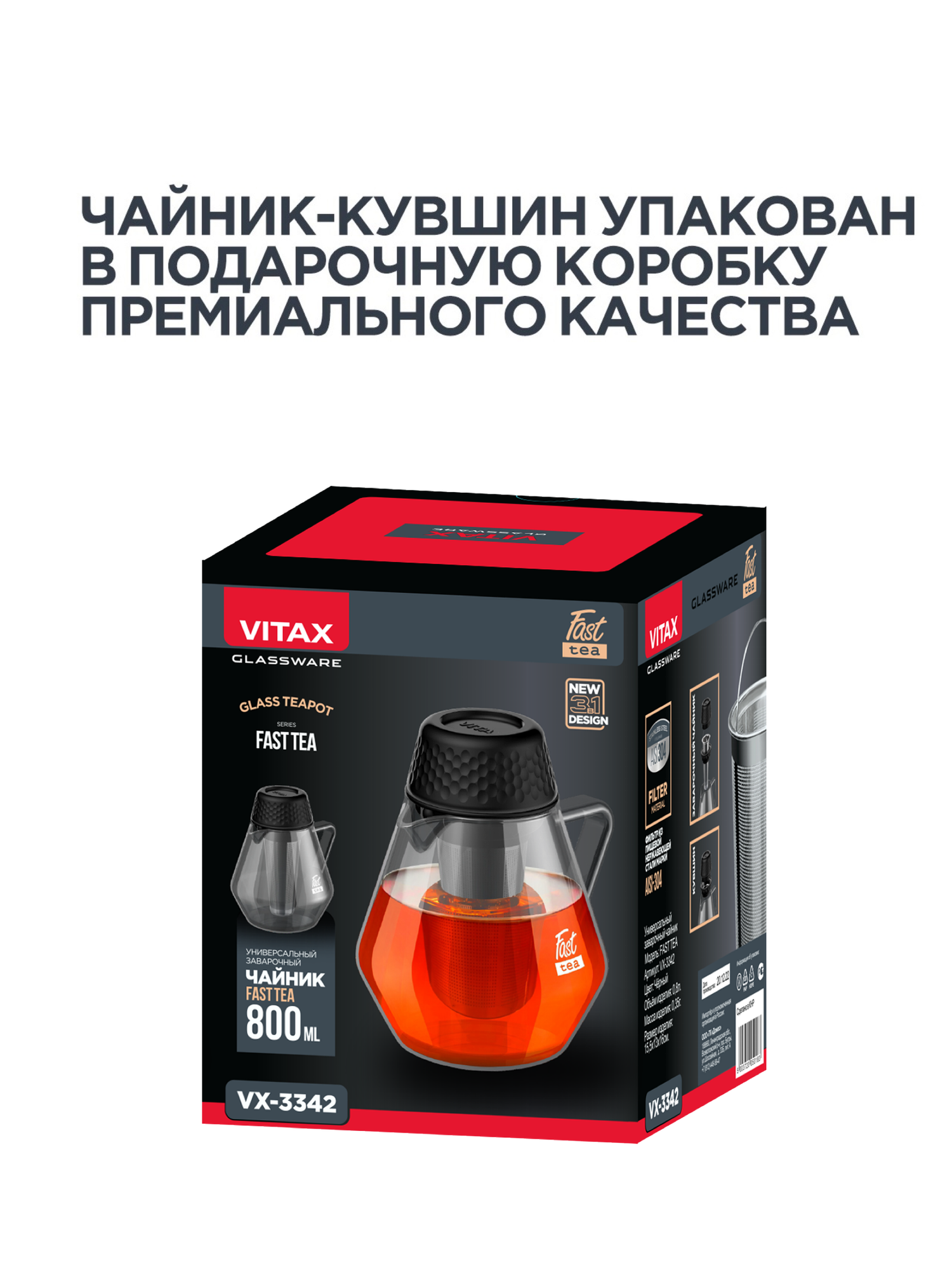 Купить Стеклянный заварочный чайник Vitax с подогревом и съемным ситечком 800 мл