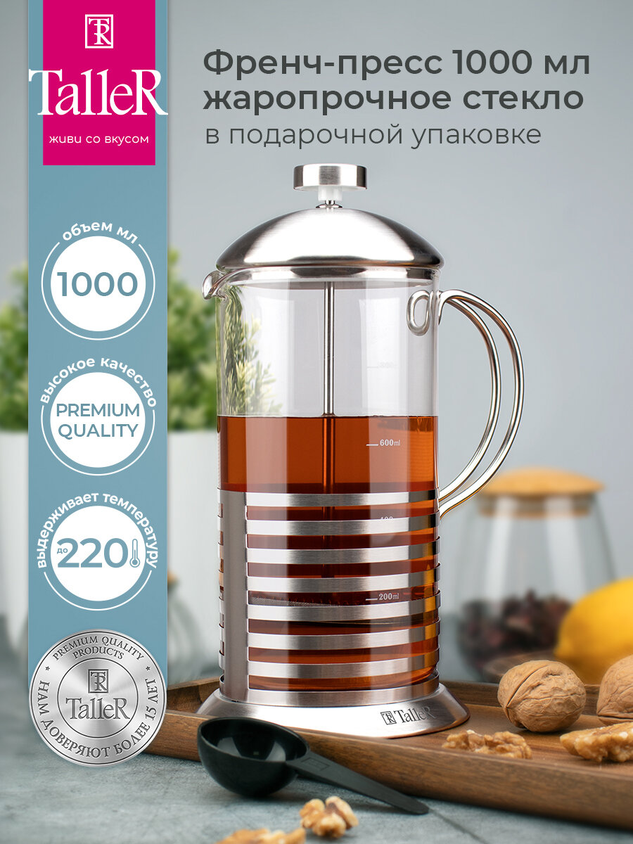 Френч-пресс TalleR TR-32310 Грегори 1000 мл интересное: