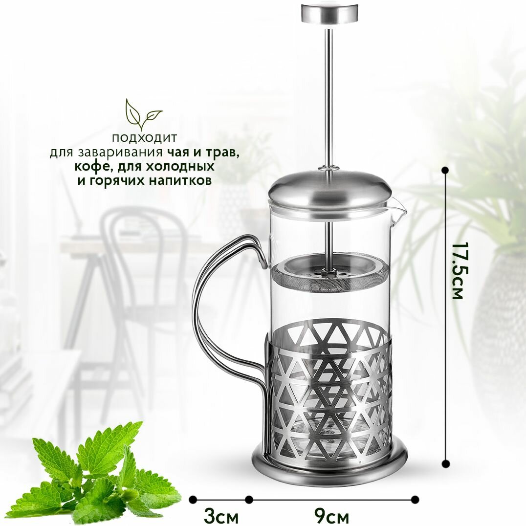 Купить Стеклянный френч-пресс 350 мл заварочный чайник, треугольники