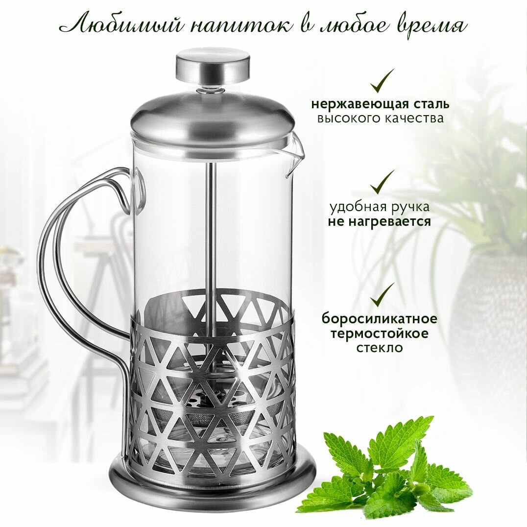 СохранитьСтеклянный френч-пресс 350 мл заварочный чайник, треугольники интересное: