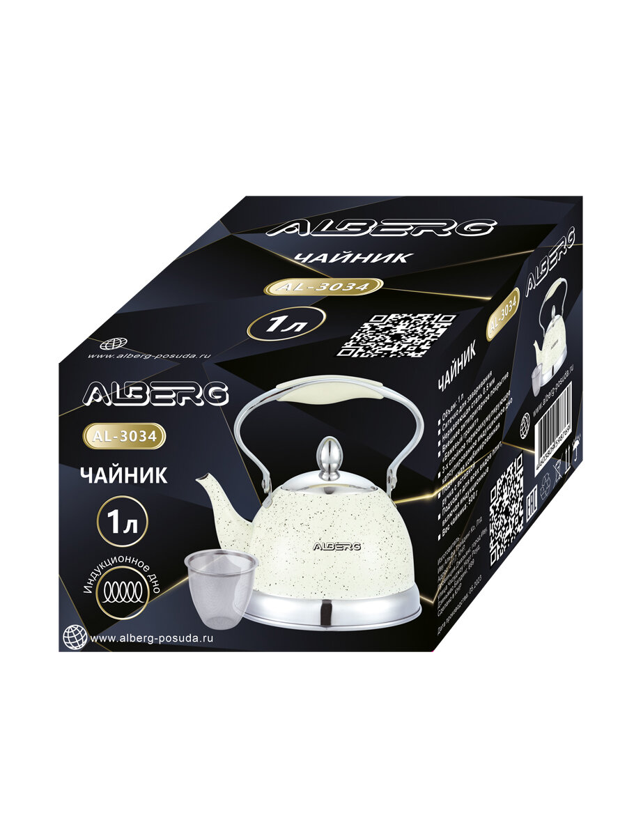 Чайник для плиты с фильтром ALBERG AL-3034 1 литр, антипригарное покрытие «Бежевый гранит» интересное: