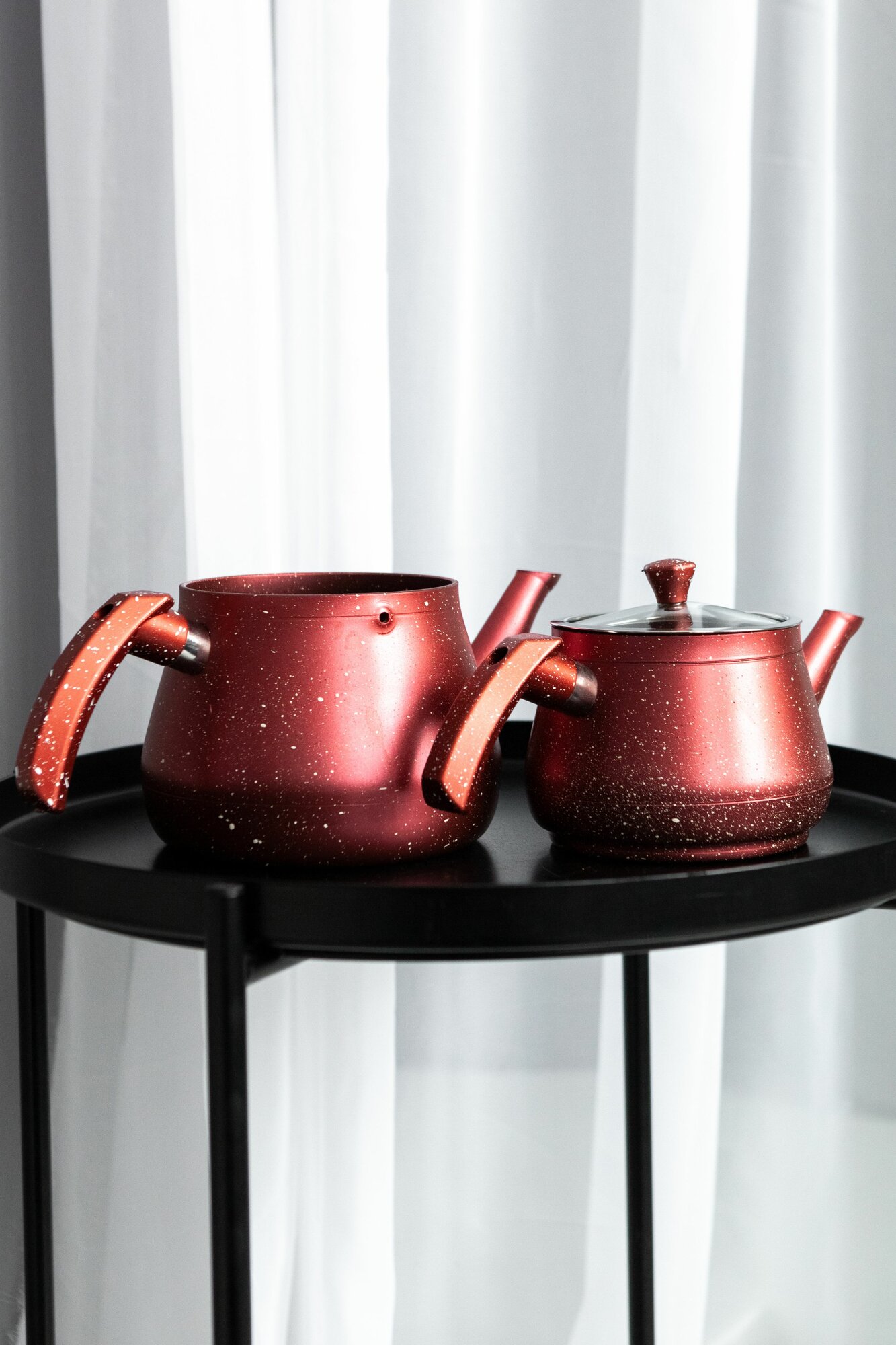 Двойной чайник красный гранит с металлической ручкой 2л 1л