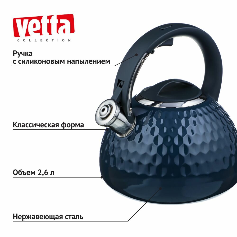 Купить Чайник со свистком 2,6 л для плиты "Пикар" VETTA, индукция, стальной