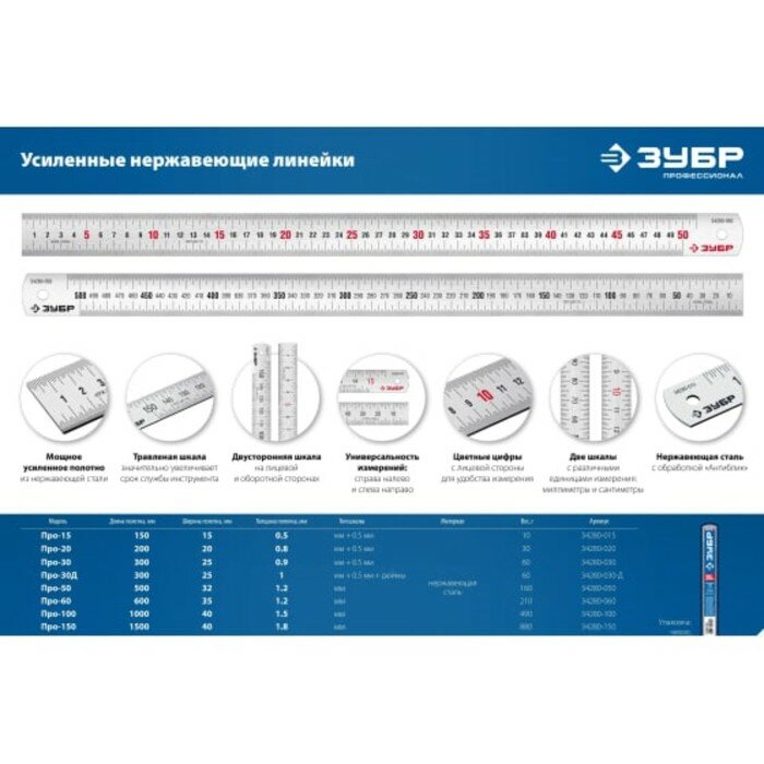 Усиленная нержавеющая линейкаПро-150, 1,5 м ЗУБР 34280-150 интересное: