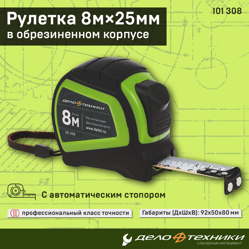 Рулетка Дело Техники в обрезиненном корпусе 8м × 25мм, 101308