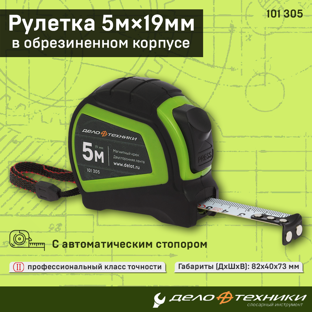 Рулетка Дело Техники в обрезиненном корпусе 5м × 19мм, 101305