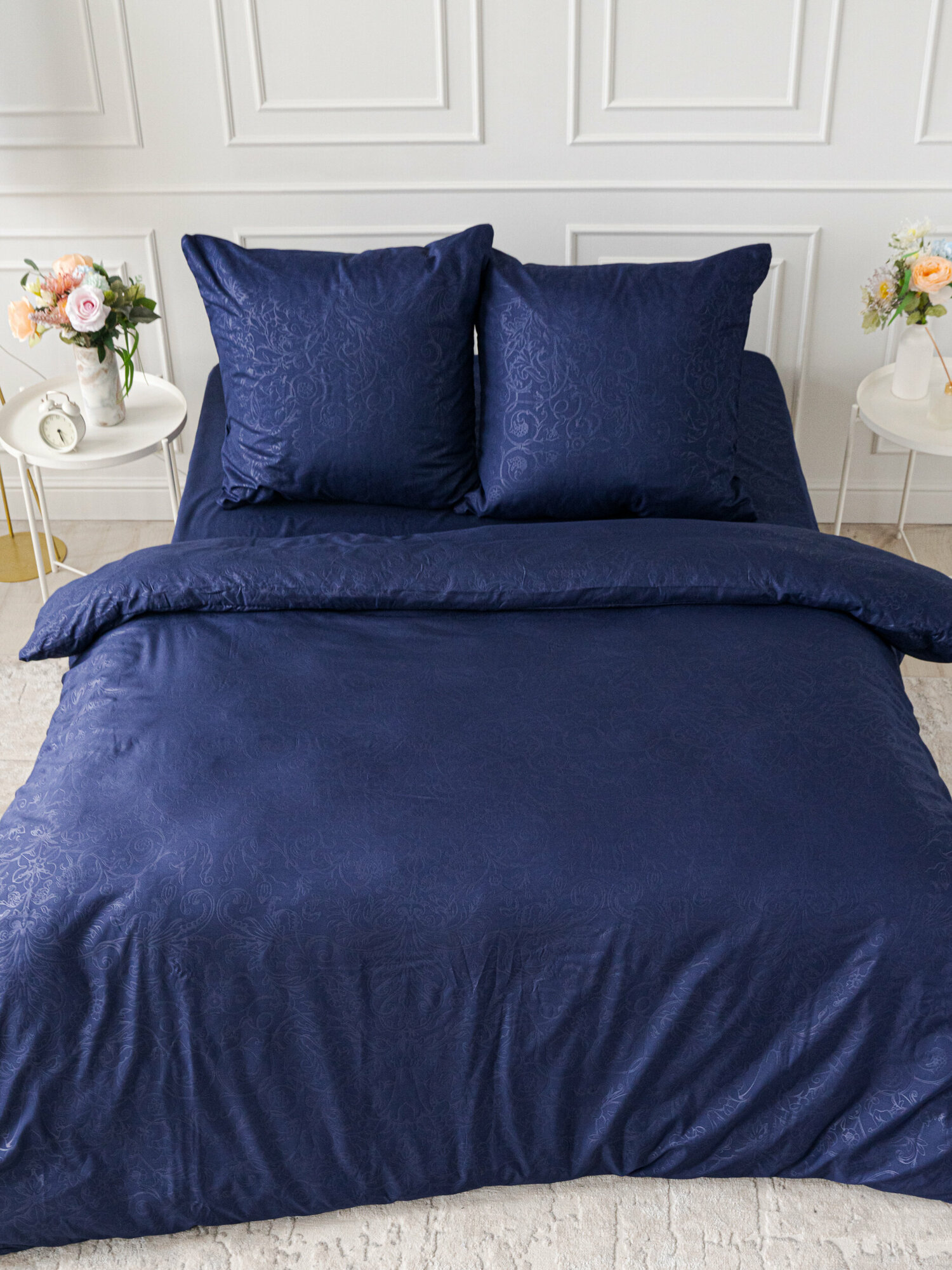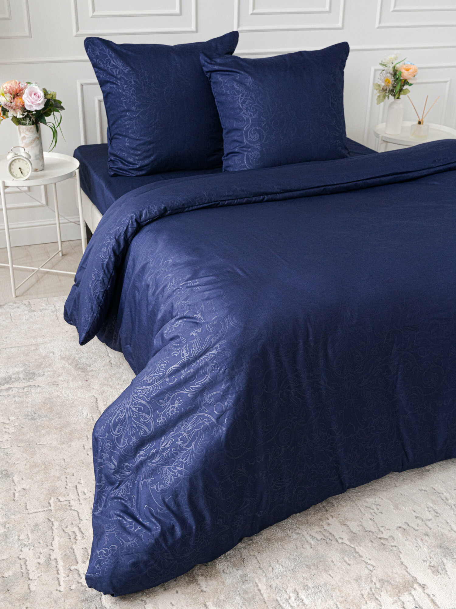 Постельное белье 1.5 спальное Павлина полисатин "Laura", синий