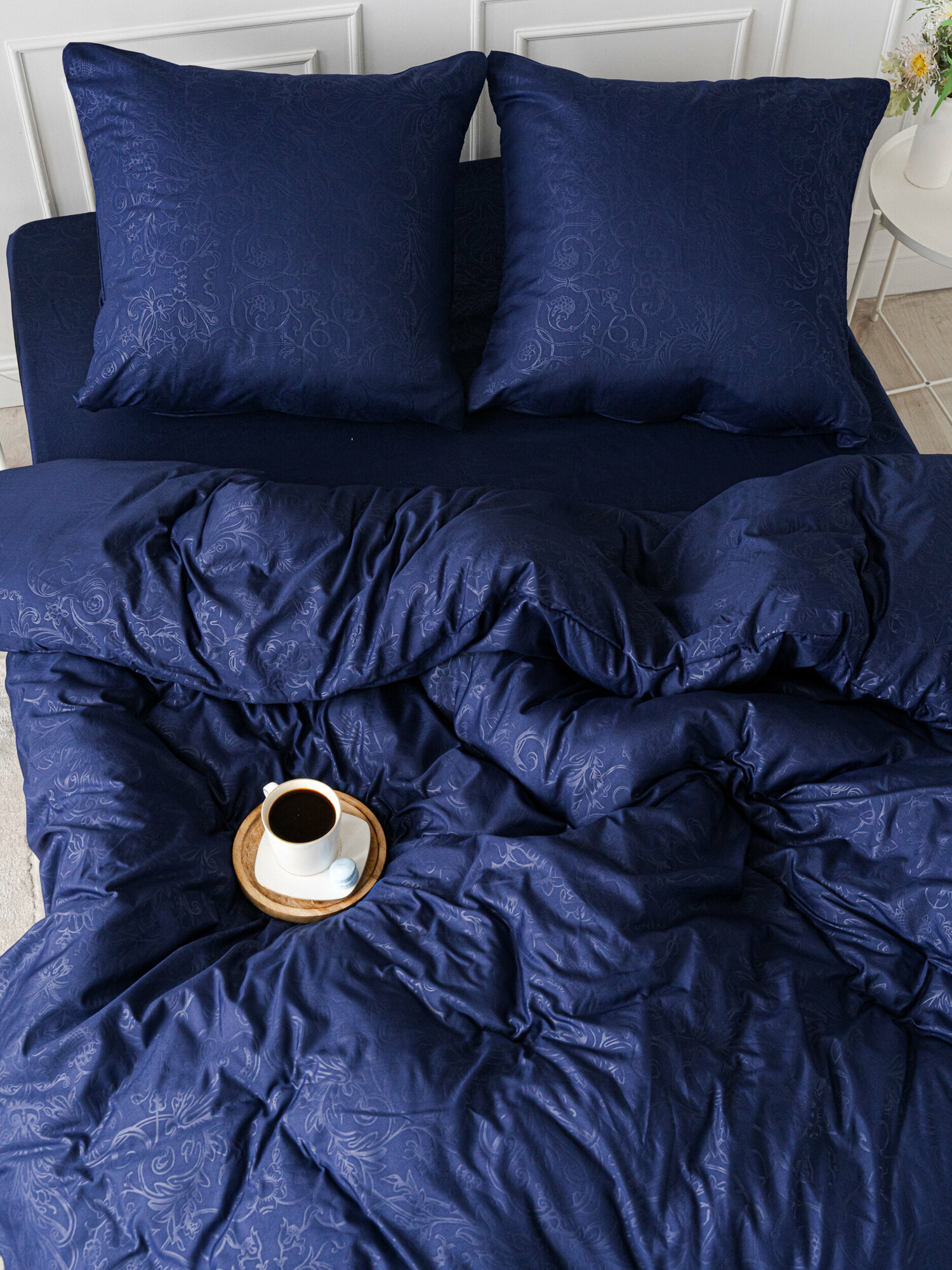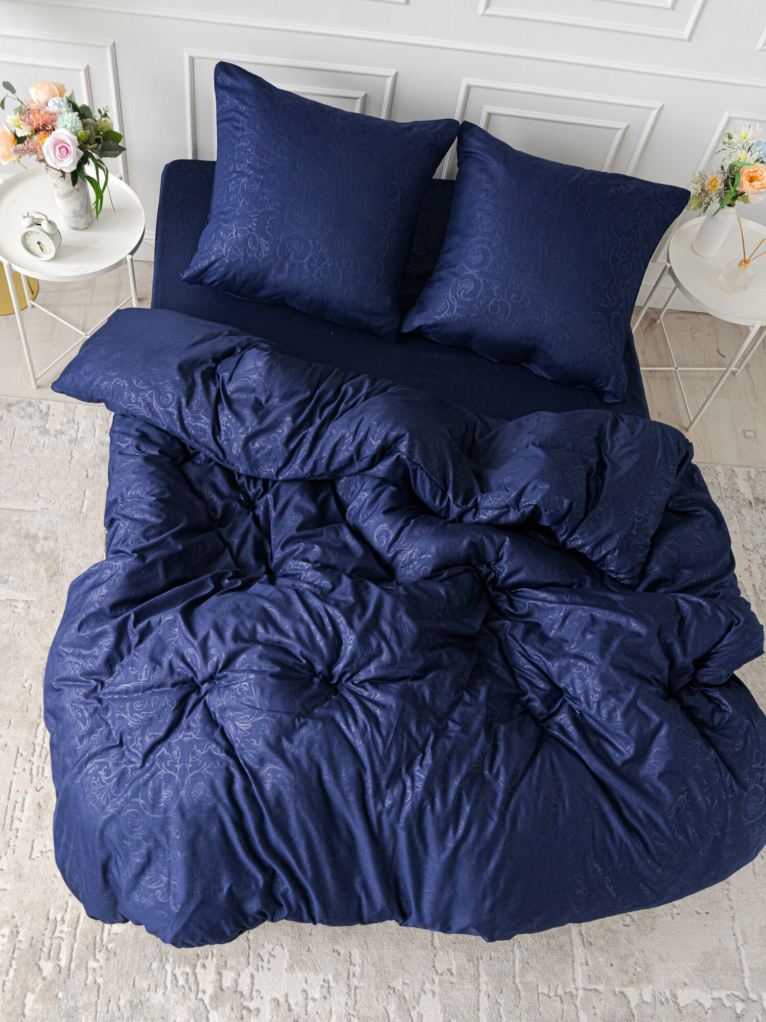 Постельное белье 2 спальное с европростыней Павлина полисатин "Laura", синий