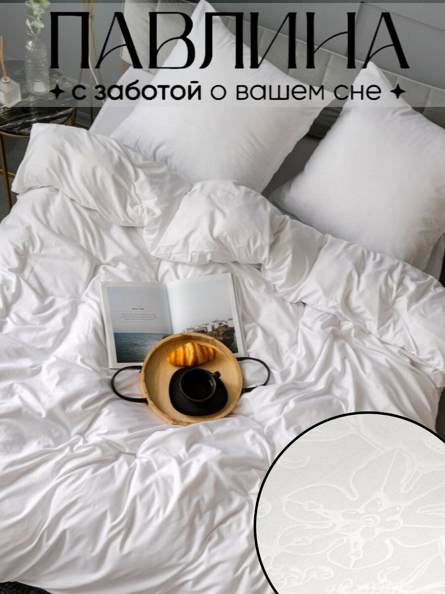 Постельное белье 1.5 спальное Павлина Laura, полисатин, белый
