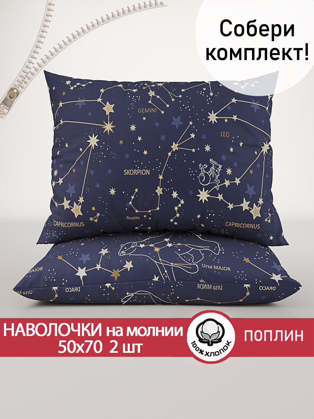Наволочка 2шт на молнии 70х70 см Сказка "Созвездия", ткань поплин, 100% хлопок