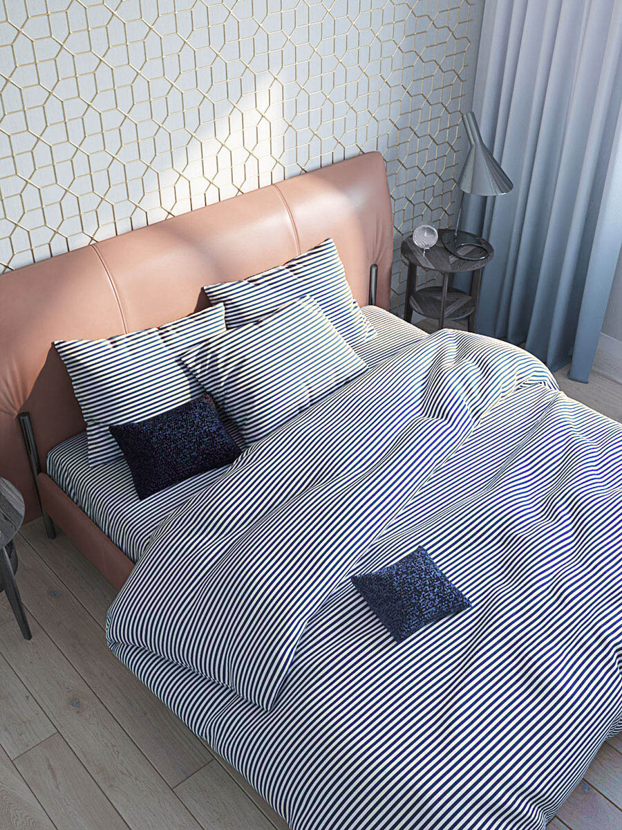 Простынь на резинке Ecotex "Моноспейс", сатин - 100% хлопок, темно-синий