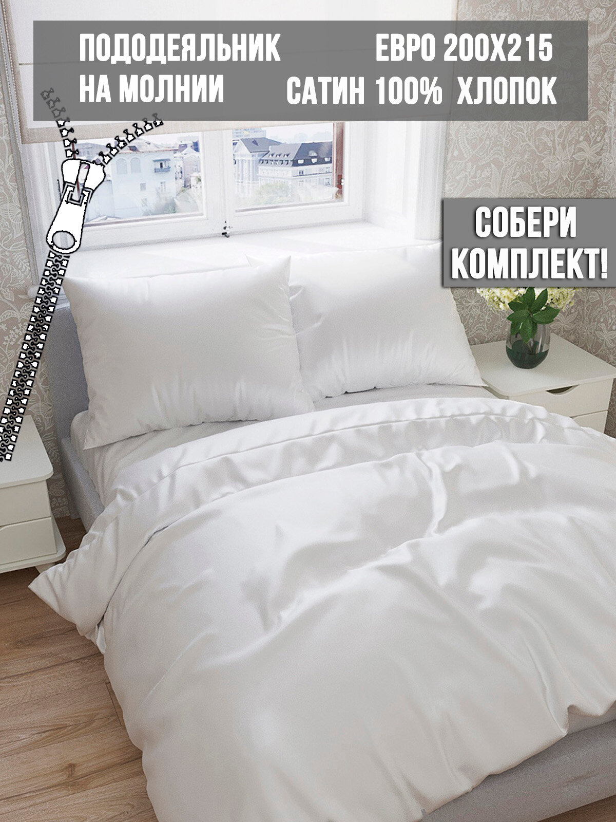 Пододеяльник на молнии сатин Milky Garden "Snowwhite" евро 200х215 см интересное: