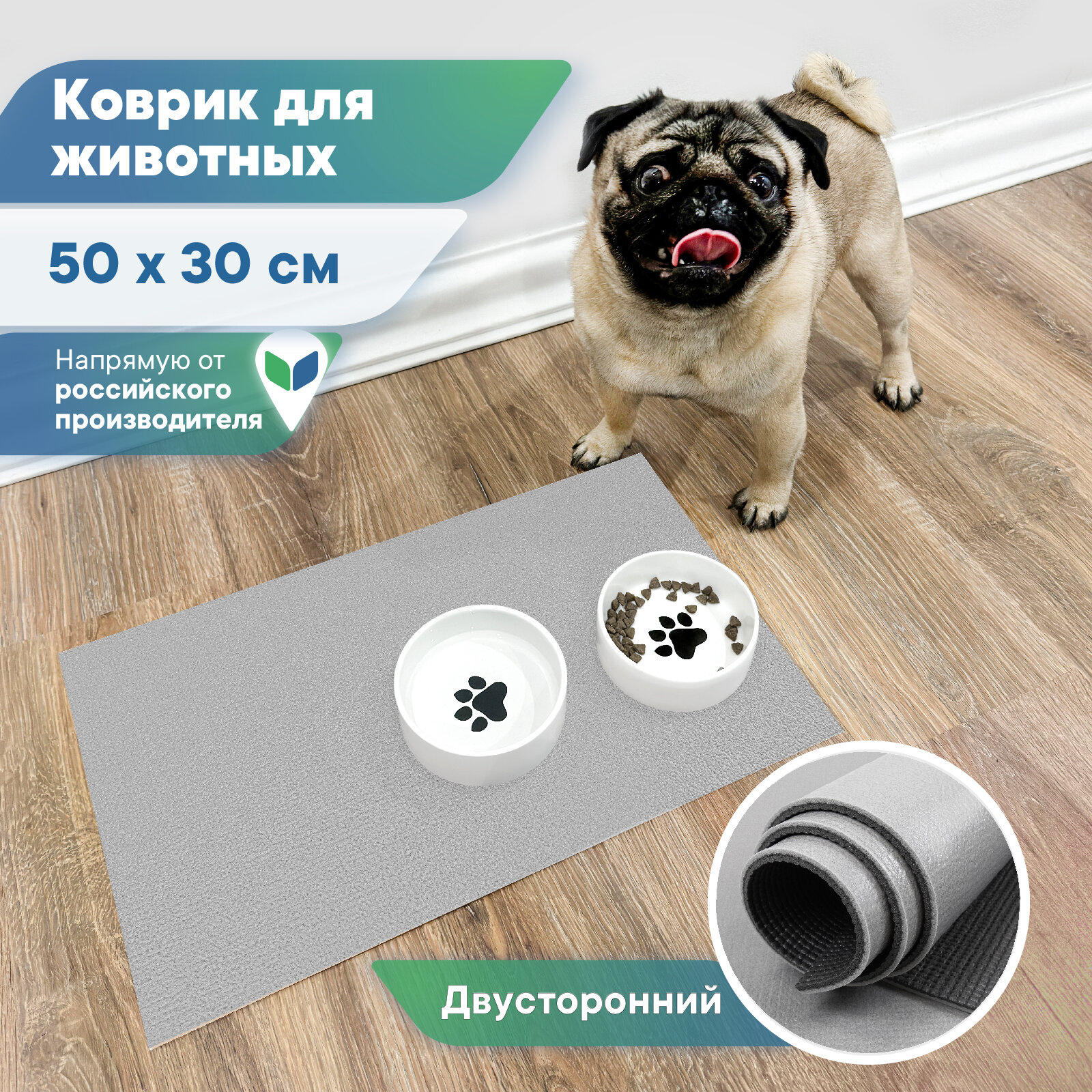 Коврик для животных под миску противоскользящий серый "Зооковрик" / коврик для кошек и собак 50х30см кошки