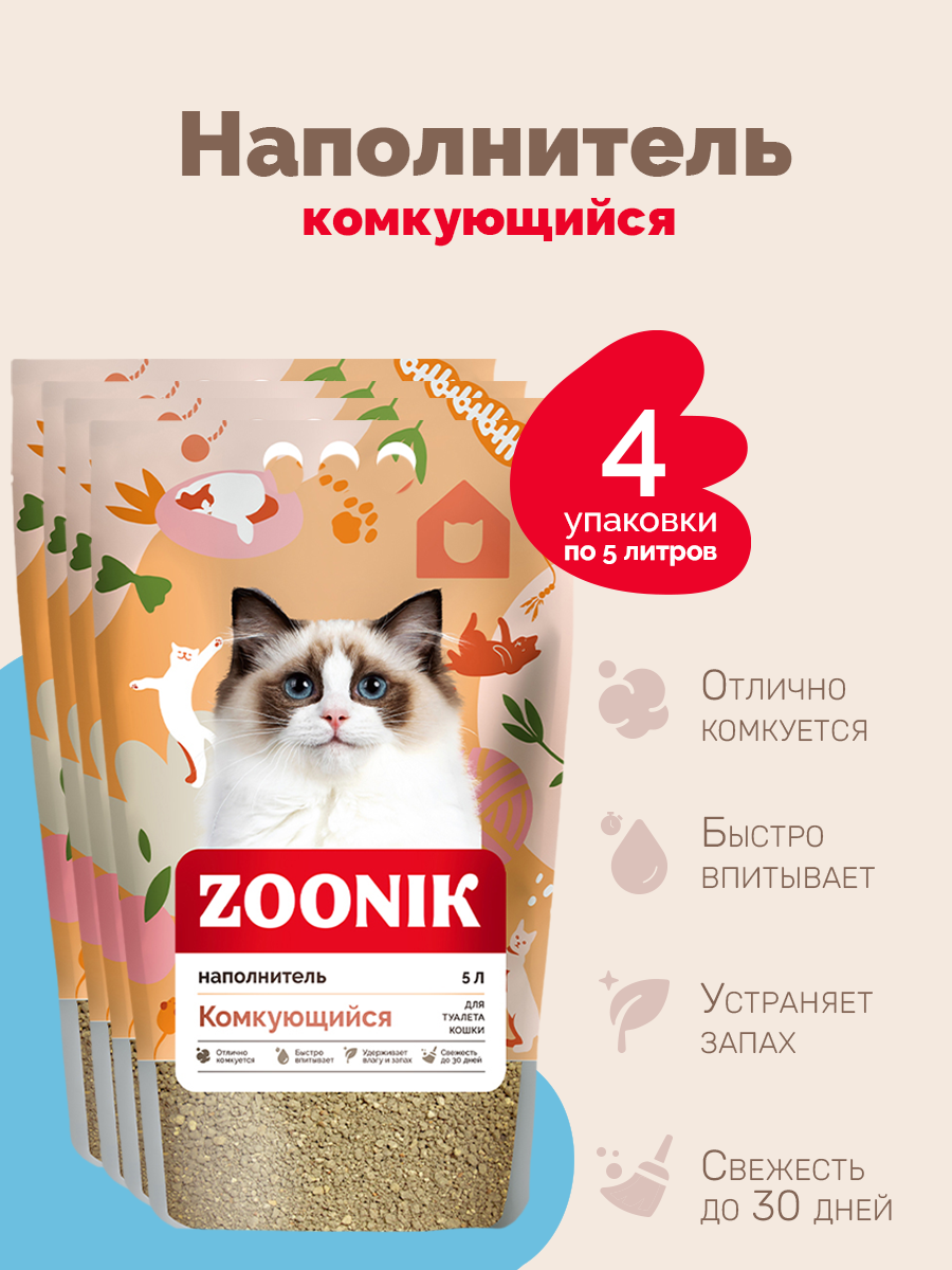 Наполнитель комкующийся Зооник 5 л, 4 шт интересное: