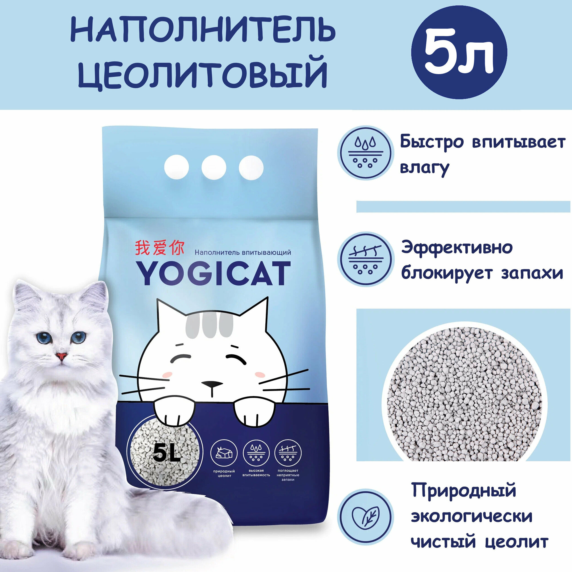 Впитывающий минеральный наполнитель для кошачьего туалета из цеолита YogiCat 2,5 кг (5л) интересное: