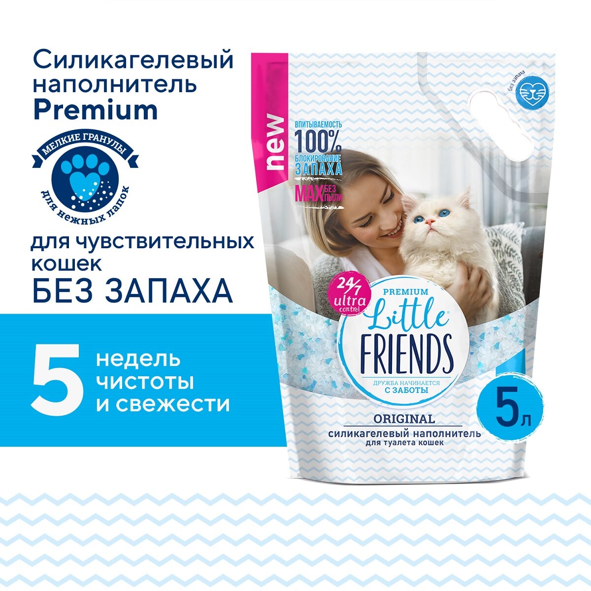 Little Friends Original наполнитель силикагелевый впитывающий 2 кг. 5 л.