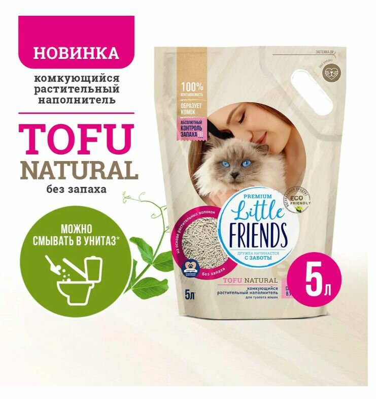 LITTLE FRIENDS TOFU NATURAL наполнитель комкующийся растительный для туалета кошек (5 л)