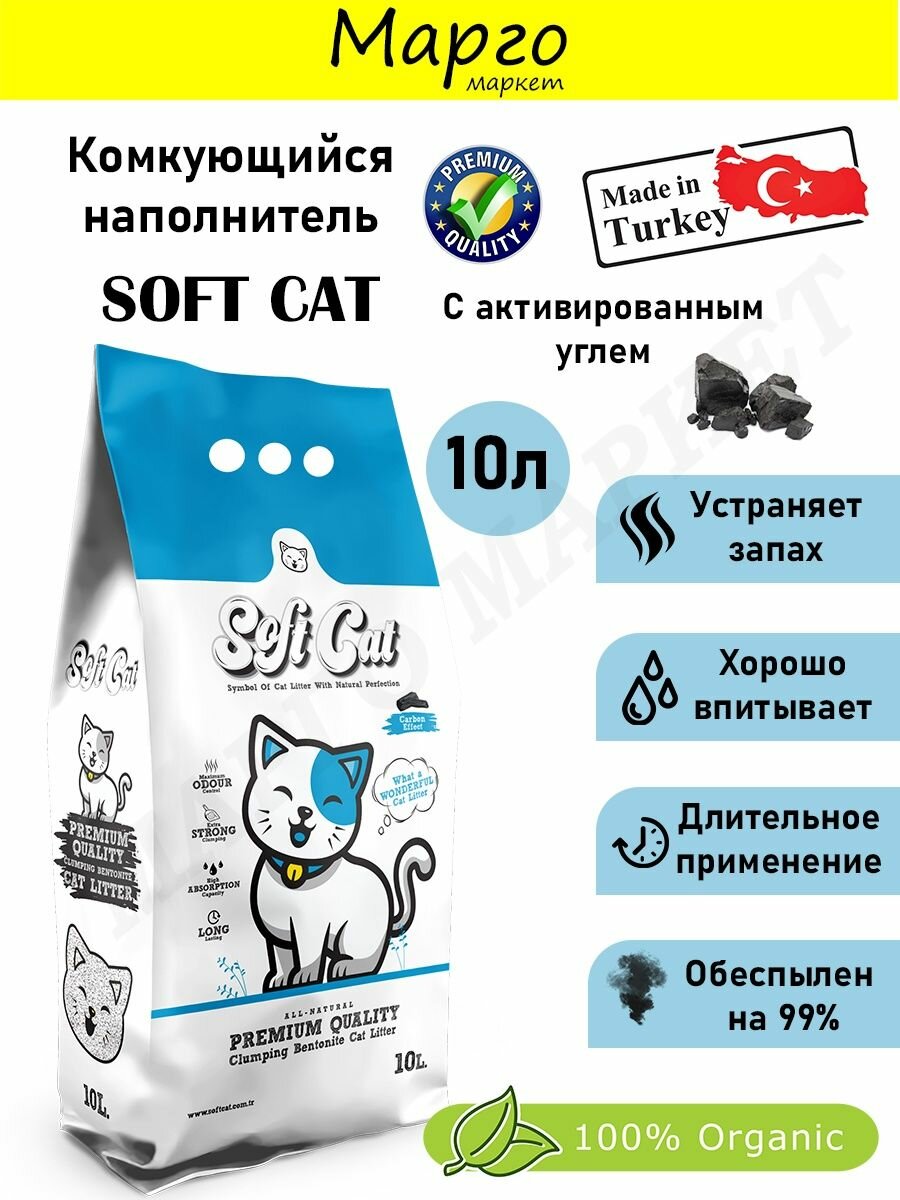 Купить SOFT CAT 10л Комкующийся наполнитель с с активированным углем
