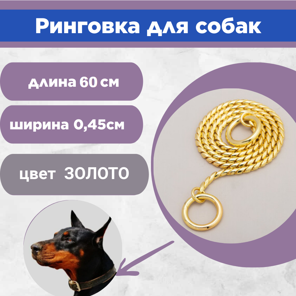 Купить Ринговка для собак 60 х 0,45 см, цепочка-кобра рывковая, ошейник, цвет золотистый