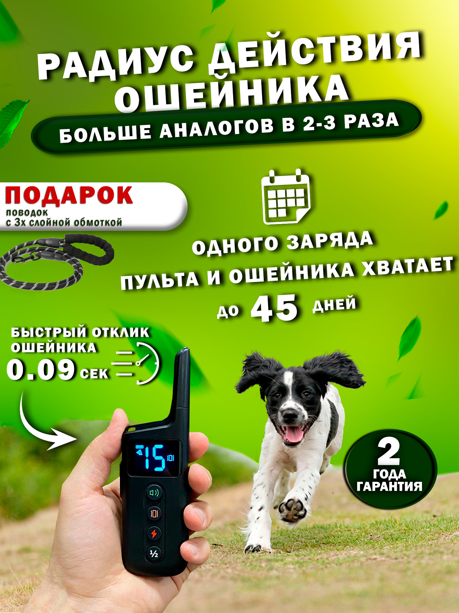 | Комплектация | инструкция; Пульт ДУ - 1 шт; Электронный ошейник дрессировка собак - 1 шт; кабель зарядного устройства; наконечники; силиконовые колпачки; поводок |