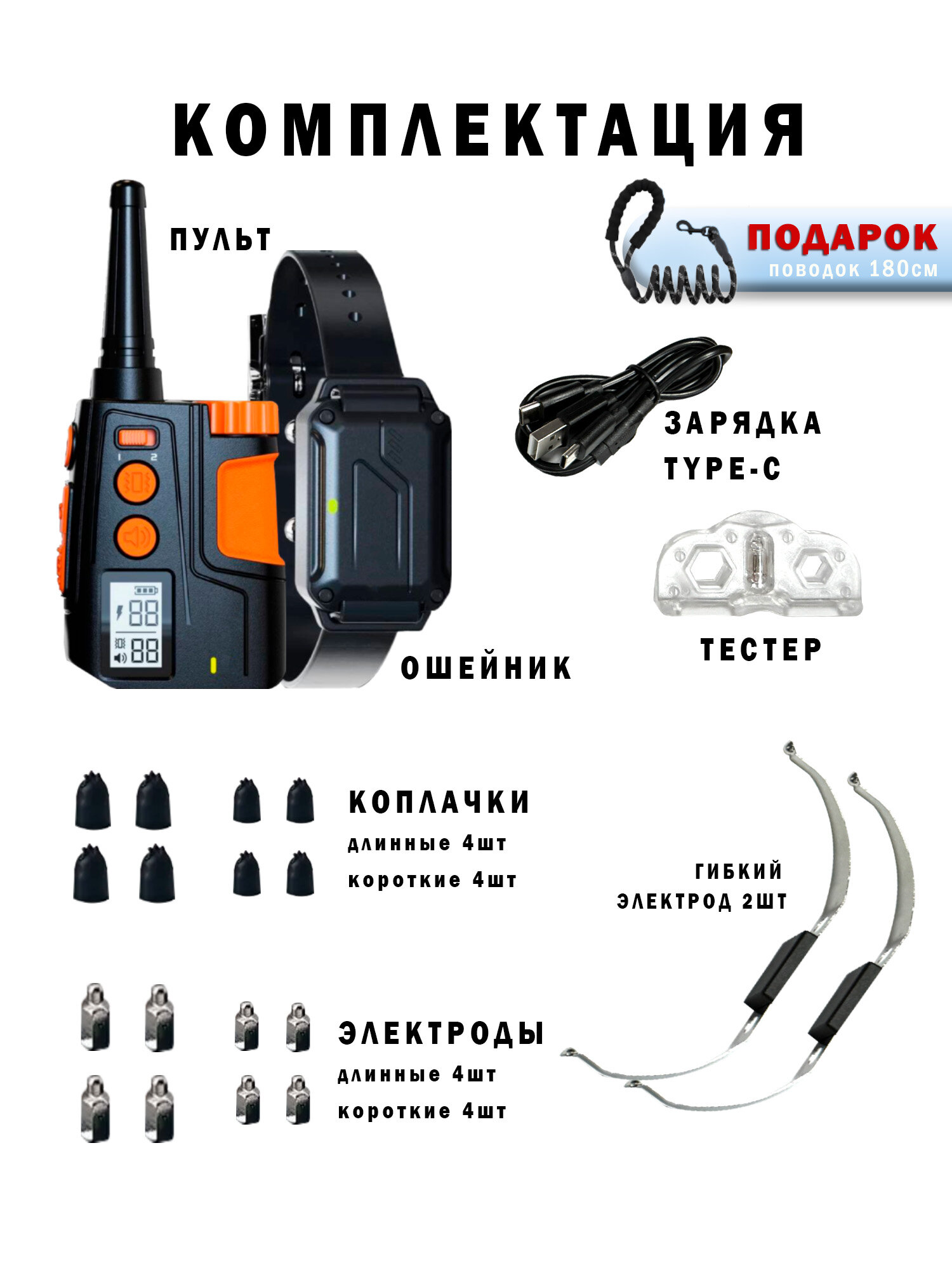 | Комплектация | инструкция; Пульт ДУ - 1 шт; Электронный ошейник дрессировка собак - 1 шт; кабель зарядного устройства; наконечники; силиконовые колпачки; поводок |