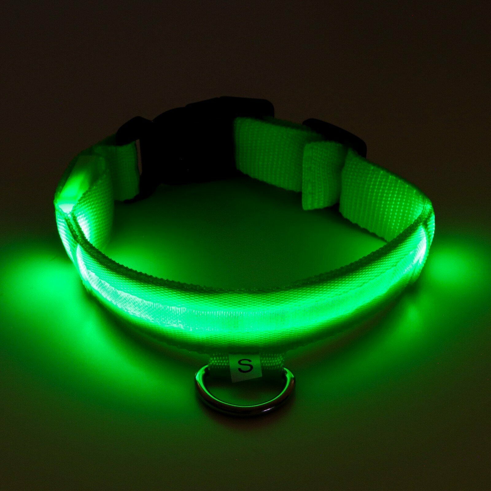 Ошейник с подсветкой, зарядка от USB, размер XS, ОШ 28-38 см, 3 режима, зелёный, 1698436