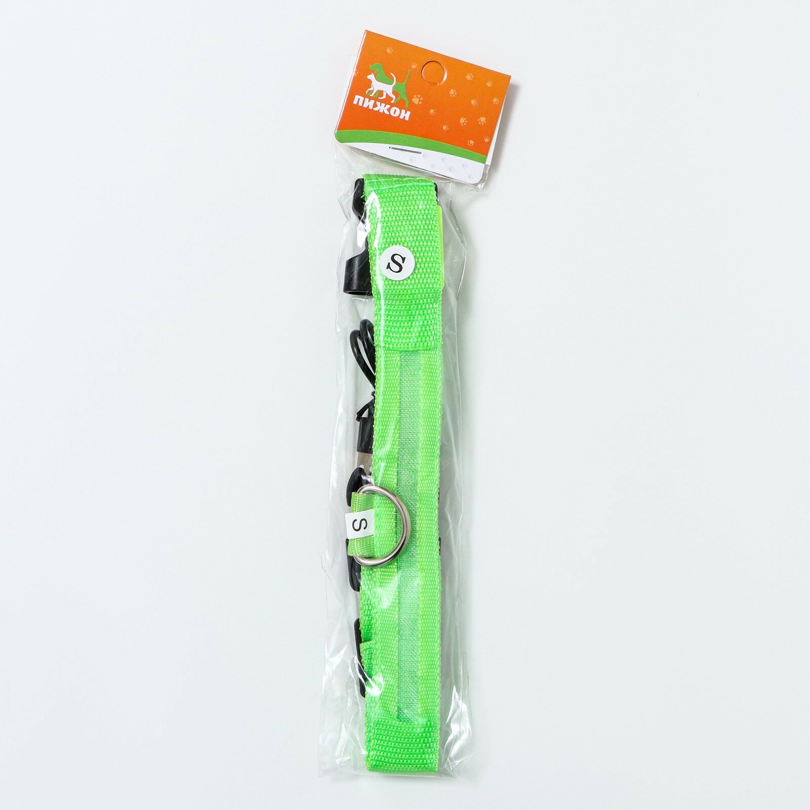 Купить Ошейник с подсветкой, зарядка от USB, до 38 см, 3 режима свечения, зелёный