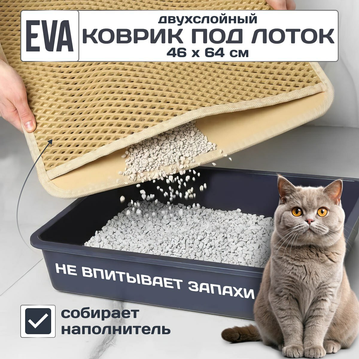 Купить Двухслойный коврик для кошачьего туалета 64*46см, бежевый / Коврик под лоток для кота, собаки