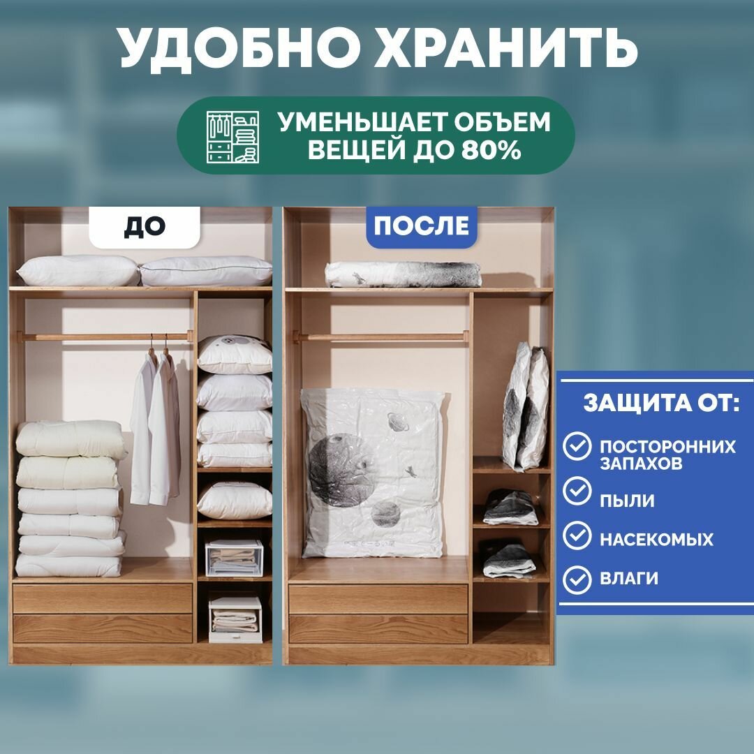 Вакуумные многоразовые пакеты для одежды, одеял и подушек с насосом 8шт