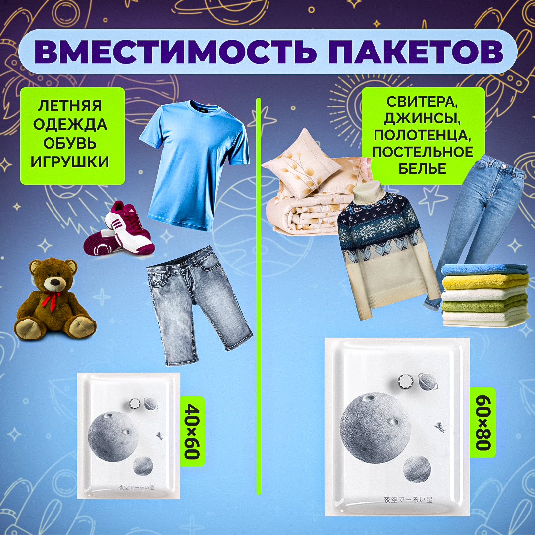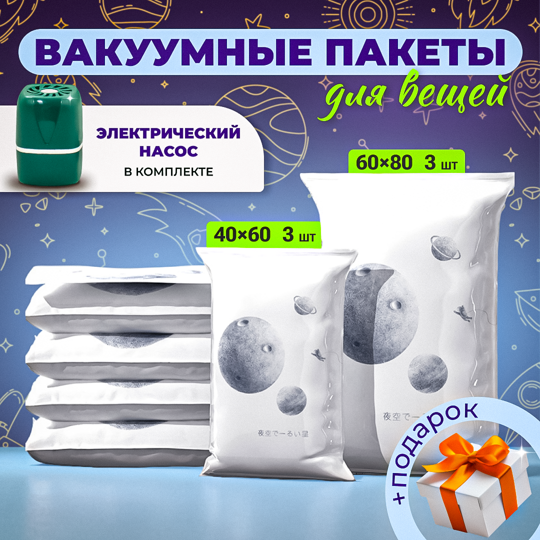 Купить Вакуумные пакеты для хранения вещей и одежды 6 штук с насосом