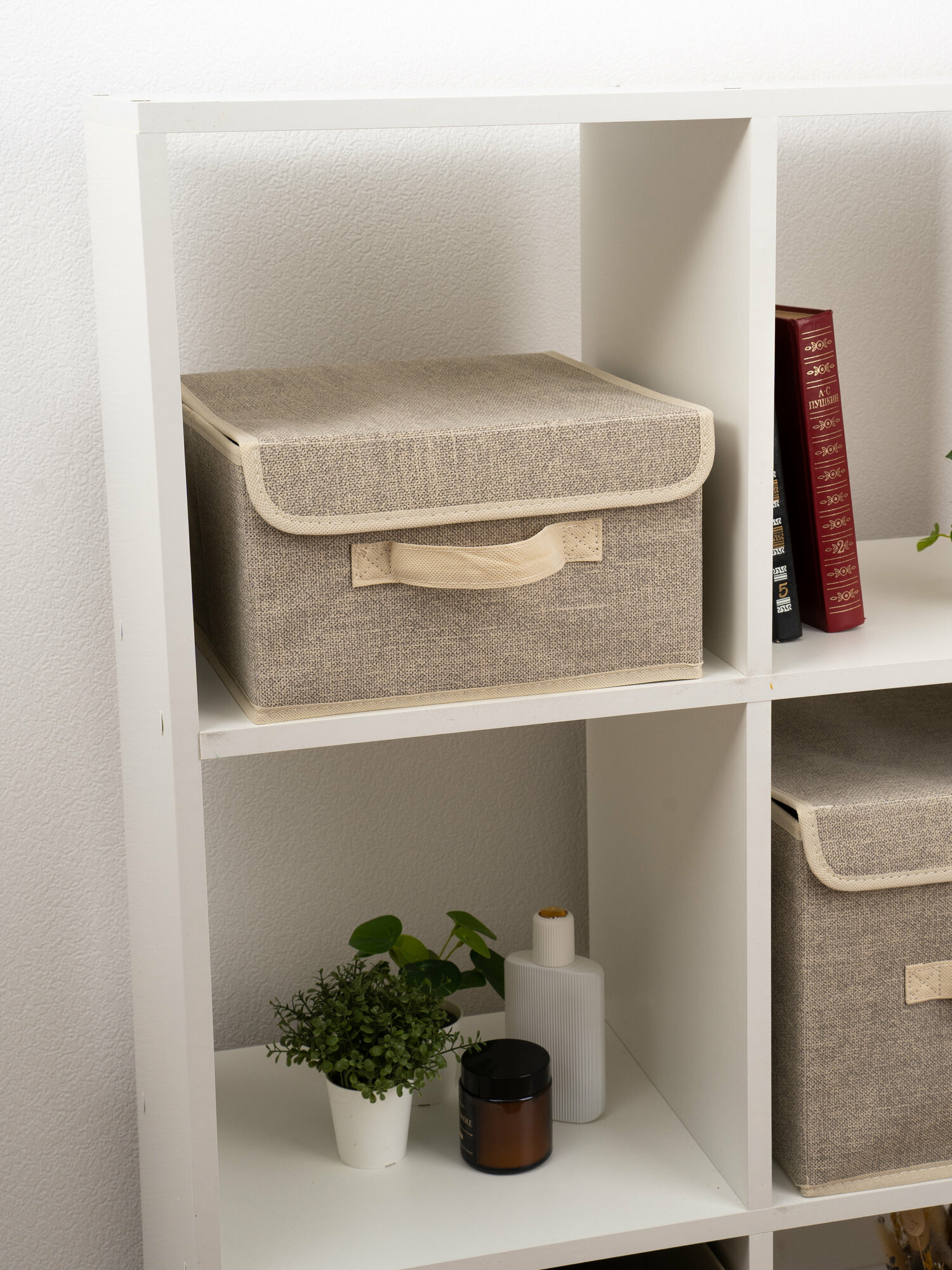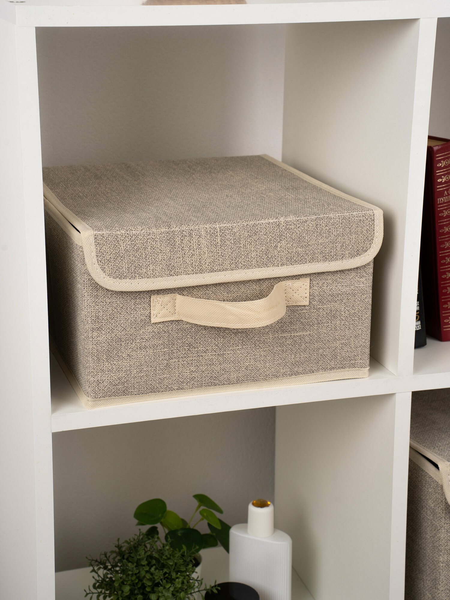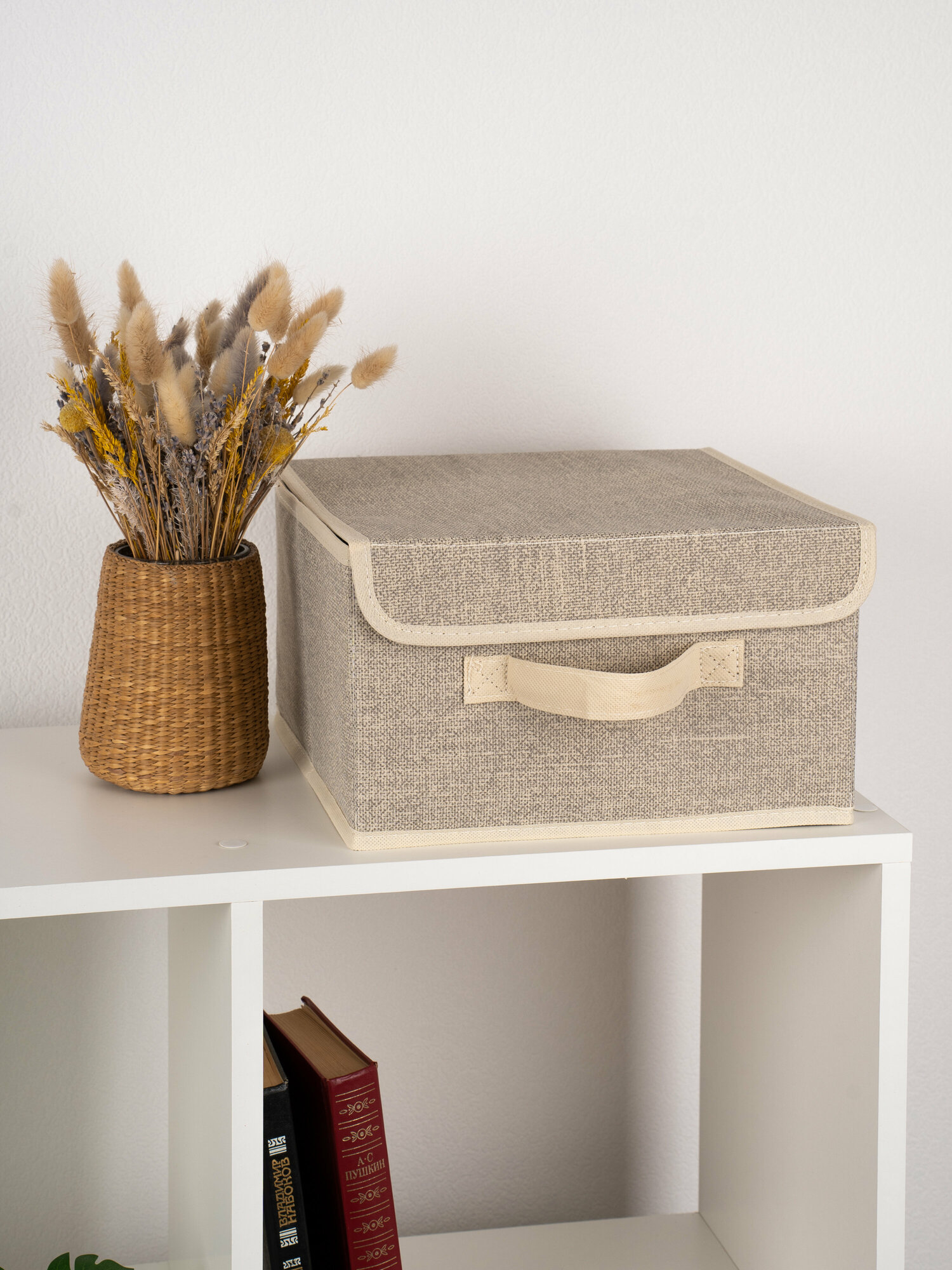 | Комплектация | Короб складной Размер: 28x30x16 см Материал: искусственный лен 80 г/см, картонные вставки, тканевые ручки |