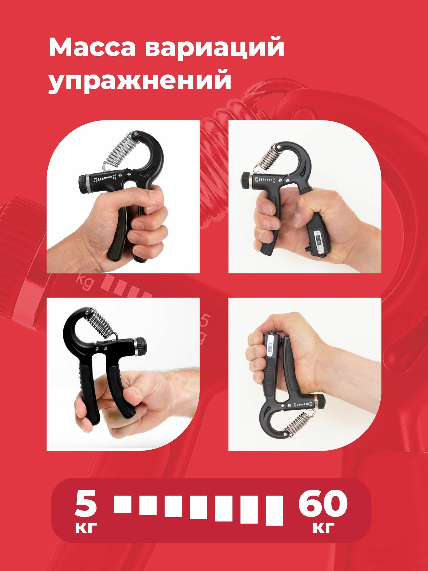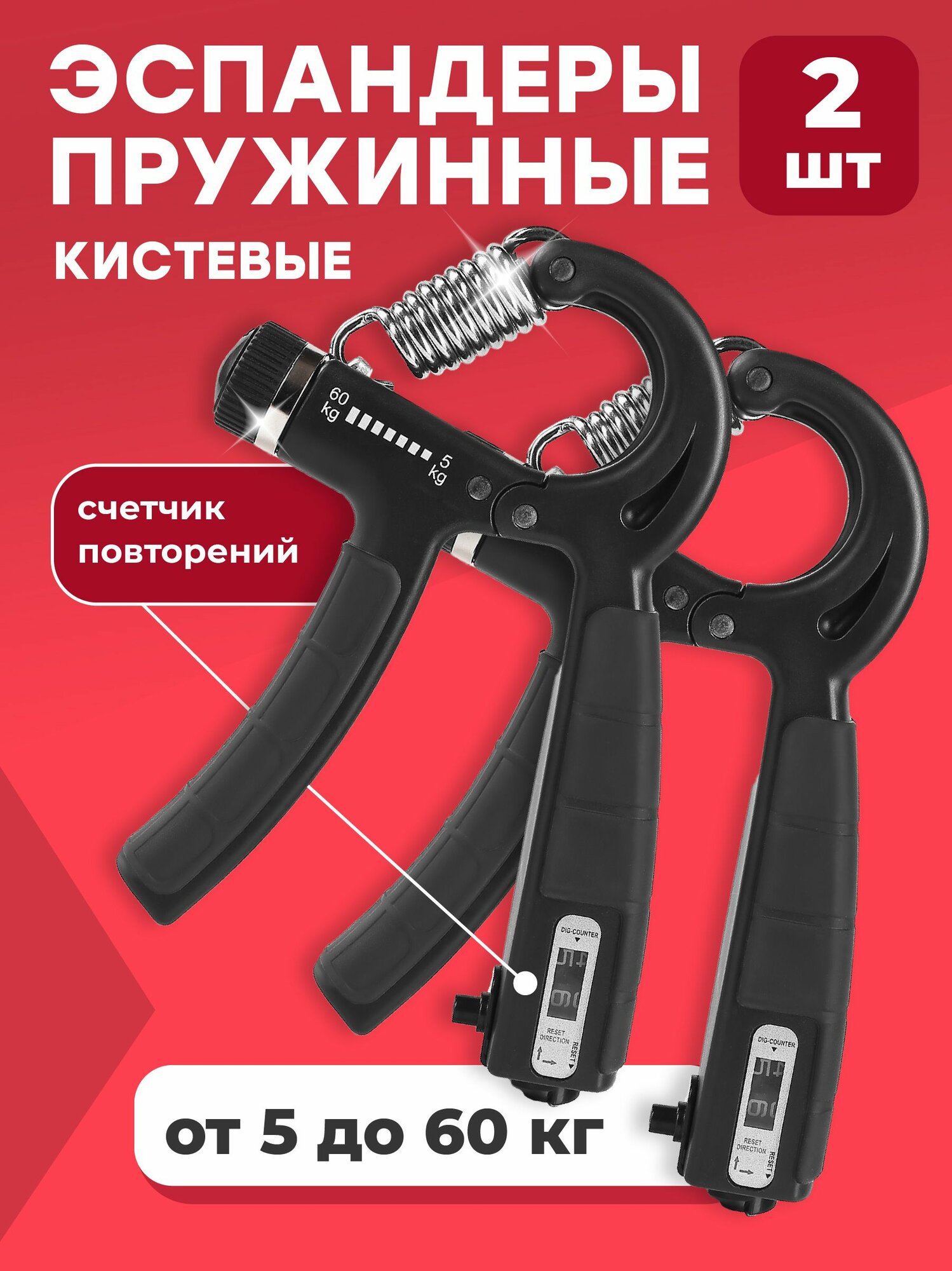 Эспандер кистевой пружинный Shark Fit, тренажер для рук регулируемый 5-60 кг, 2 шт интересное: