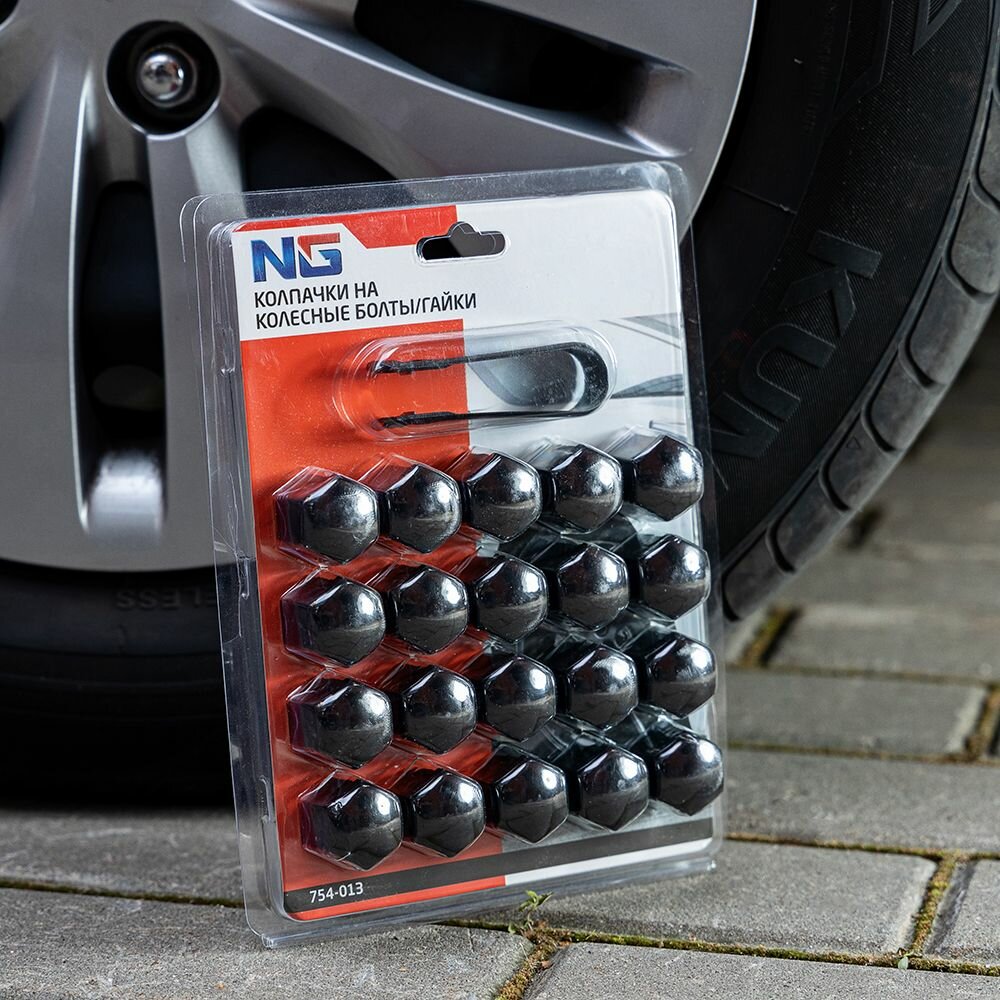 Купить NG Колпачки на колесные болты/гайки 19 мм, 20 шт.+ съёмник, пластик, черный