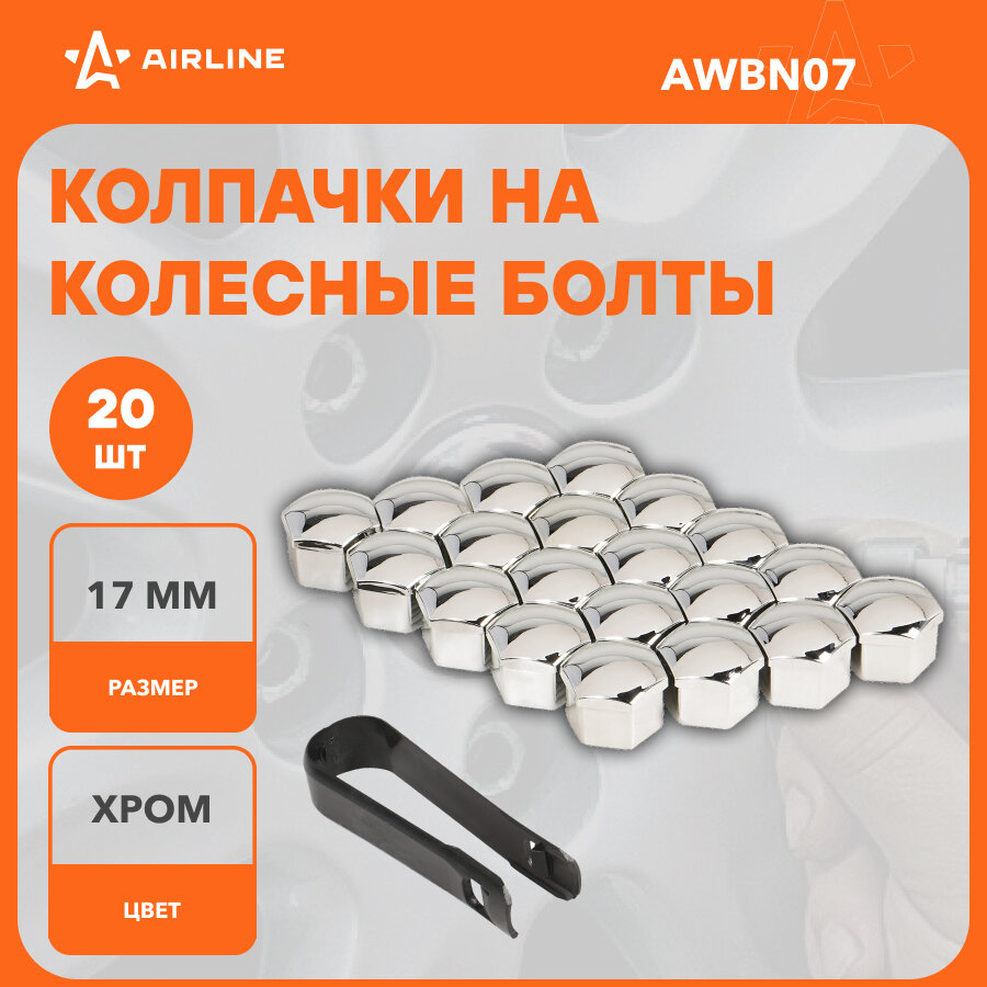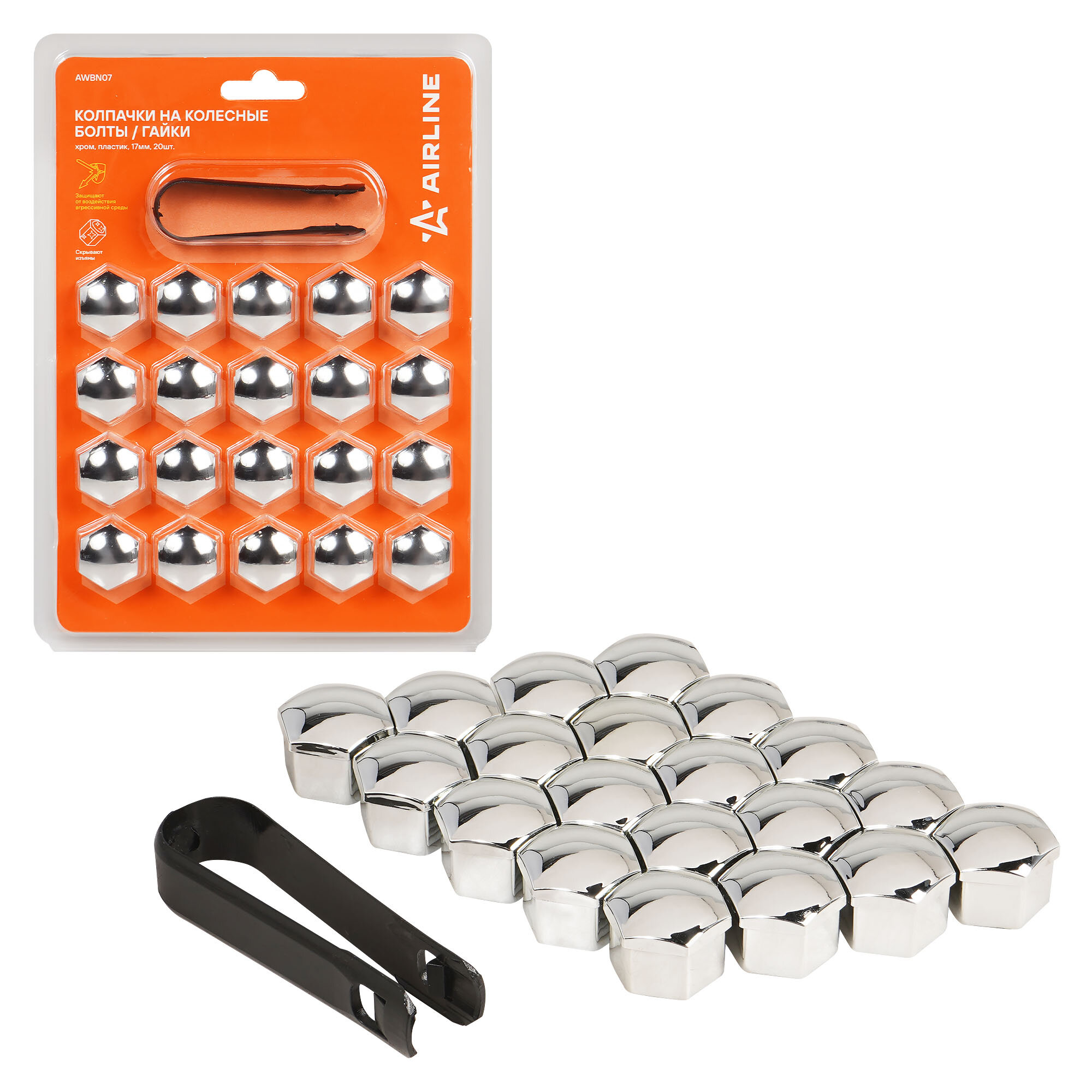 AWBN07 AIRLINE Колпачки на колесные болты/гайки 17 мм, хром, пластик, 20 шт.+ съёмник (AWBN07) AIRLINE арт. AWBN07